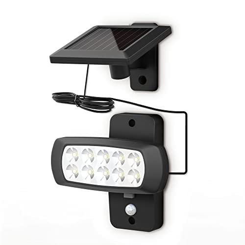 HARPER LIVING Solar Security Outdoor LED Floodlight with Motion Sensor, Weatherproof IP65, 6500k, 860 Lumens, 2000 mAH Lion Battery Solar Powered PIR Wall Lights for Garden Yard Shed Garage Driveaway