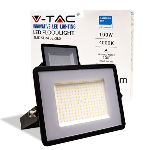 V-TAC Outdoor LED Floodlight 100W with Samsung Chip - [Latest Generation] - IP65-8200 Lumen - Outdoor LED Projector Black for Home, Garden, Garage - Waterproof - Headlights - Natural White Light