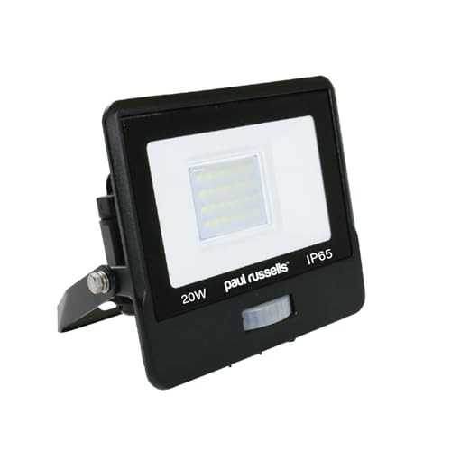 paul russells 20W Outdoor Motion Sensor Security Light – 6500K Daylight White, 2000 Lumen PIR Floodlight, IP65 Waterproof, Ultra-Thin Design, Ideal for Forecourt, Backyard, Garages, Garden and More
