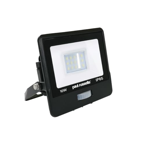 paul russells 10W Outdoor Motion Sensor Security Light – 6500K Daylight White, 1000 Lumen PIR Floodlight, IP65 Waterproof, Ultra-Thin Design, Ideal for Forecourt, Backyard, Garages, Garden and More
