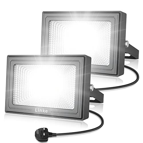 Linke LED Floodlight Outdoor 35W, 3000LM Work Lights Plug in, IP66 Waterproof Led Outdoor Lights, Wall Lights Outdoor Daylight White for Garden, Porch, Courtyard, Garage & Warehouse, 2 Pack
