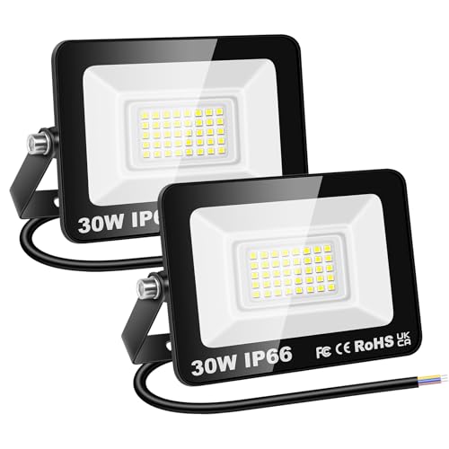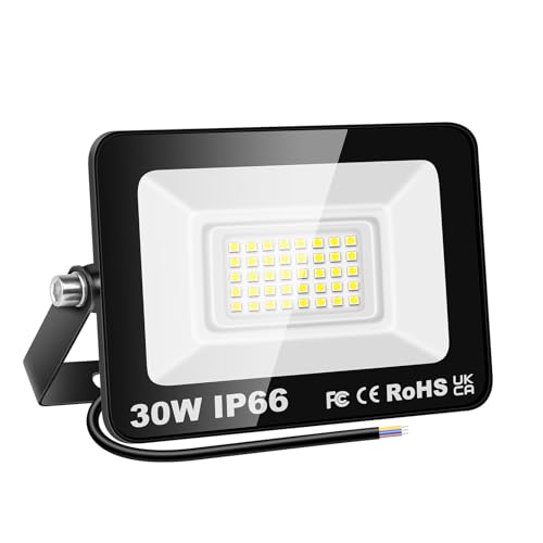 paul russells 30W LED Outdoor Floodlight - 3000LM Bright Security Lights, IP65 Waterproof, Daylight 6500K White, Garden & Outdoor Wall Lights for Garden, Garage Lighting, Warehouse, Energy-Efficient