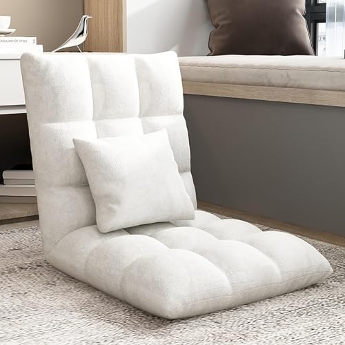 ALMASI Folding Floor Chair, Floor Gaming Chair with Back Support, 6 Adjustable Positions Chaise Lounger Sofa for Living Room, Bedroom(White)