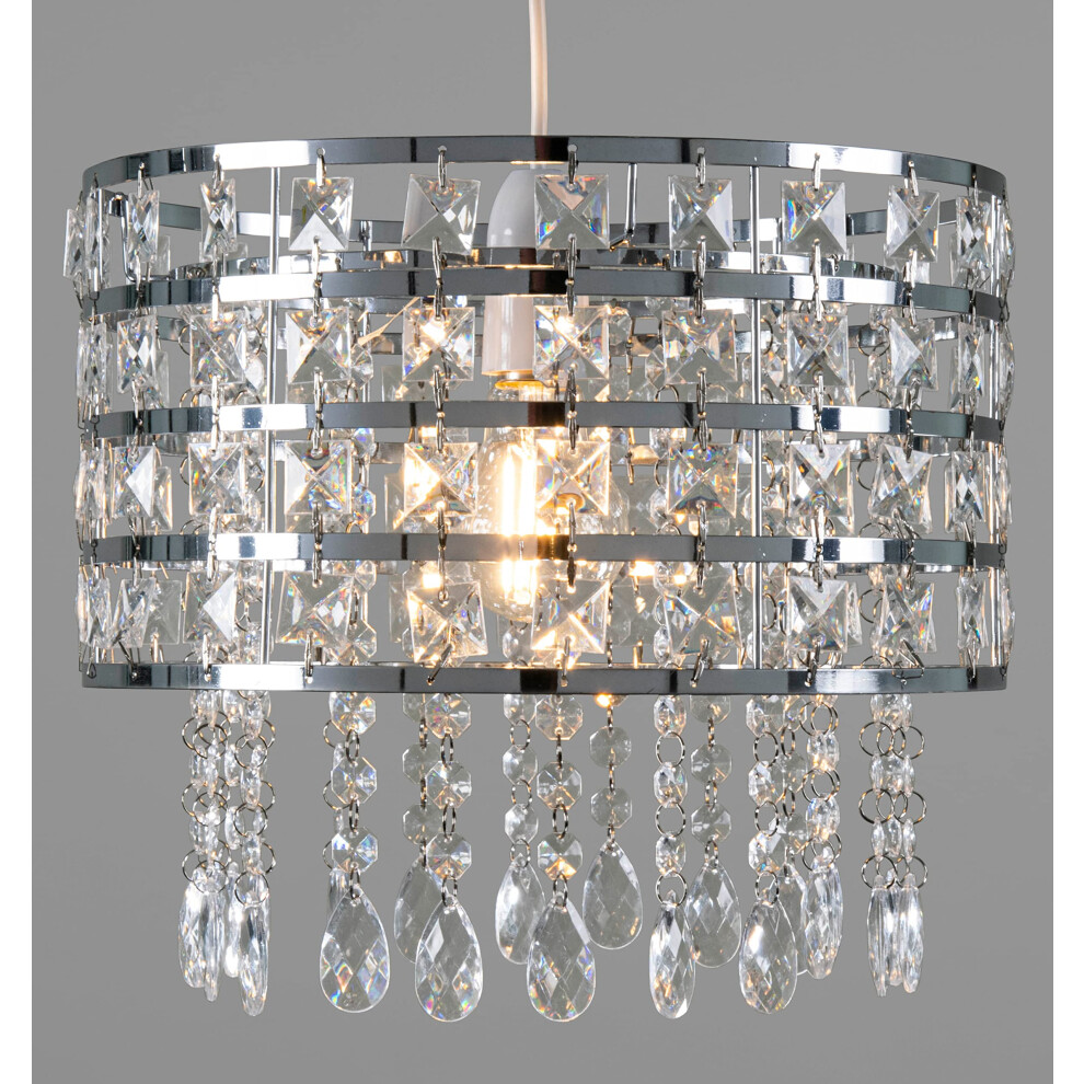 Giggi Chrome Ceiling Light Shade Cylinder Shape with Clear Acrylic Crystals 26cm x 30cm, Lampshades for Ceiling Lights & Floor Lamps, Lamp Shades for