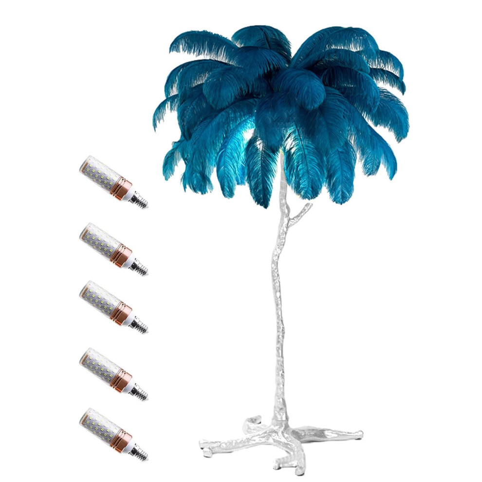 Luxury Ostrich Feather Floor Lamp with Dimmer, Silver Stand, Soft Lighting for Bedroom Decor, Blue