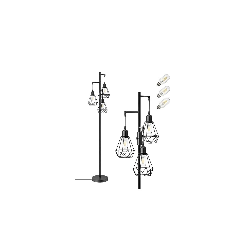 EDISHINE Industrial Floor Lamp with 3 LED Bulbs, Diamond Cage Lampshade, Dimmab