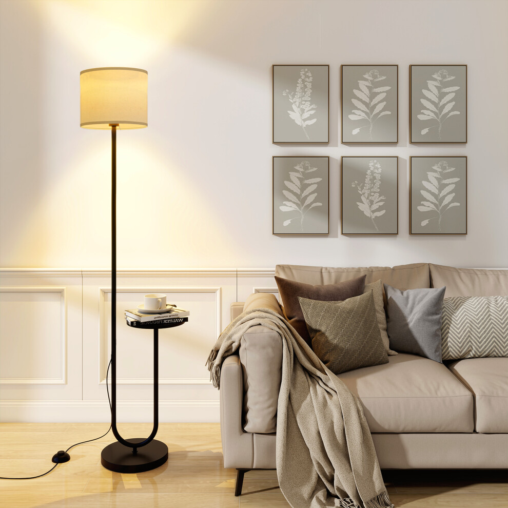 Floor Lamp with Shelf Linen Shade Standing Light Bedroom Living Room