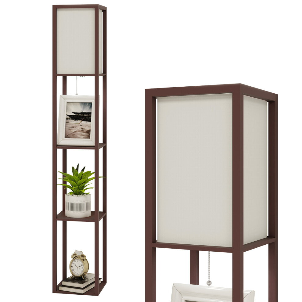 (Brown) 3-Tier LED Floor Lamp Wooden Shelf with Storage