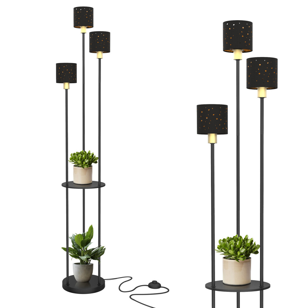 (Black) LED 3-Light Floor Lamp with Storage Shelf Study UK