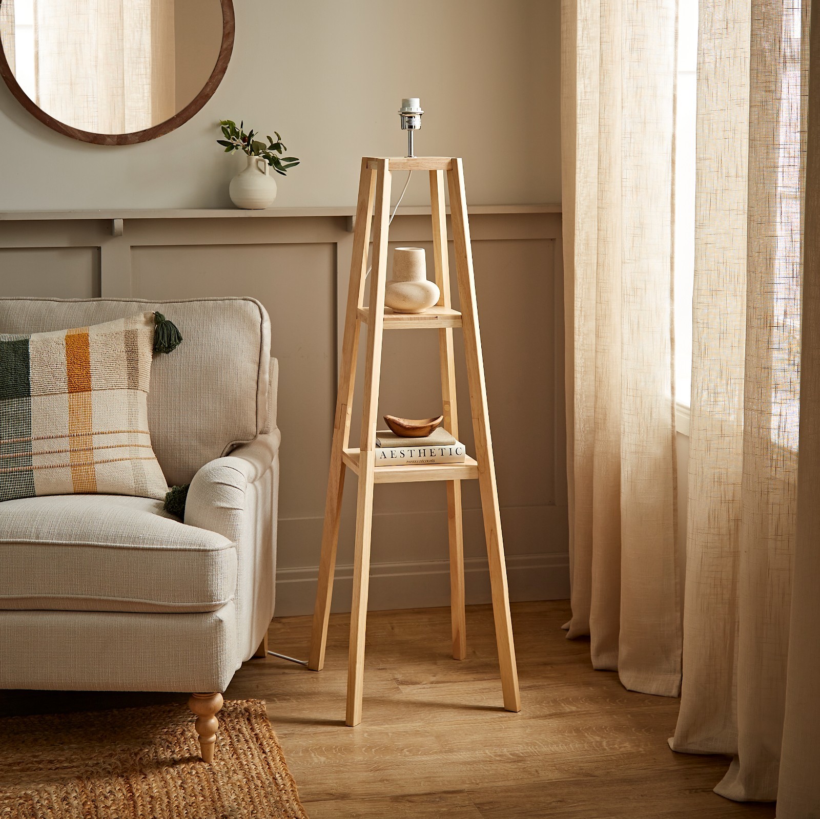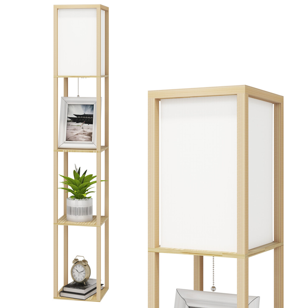 Natural Beech Wood 4-Tier Floor Lamp with Storage Shelf, 26cm x 160cm