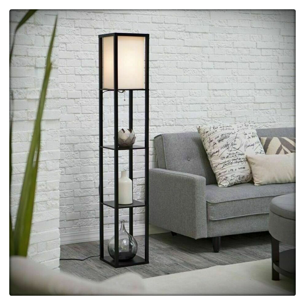 Floor Lamp Modern Illuminated Storage Shelf 29 x 29 x 163 cm Black