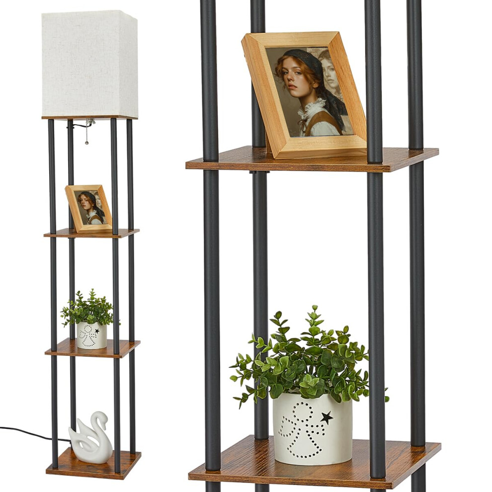 Vintage Floor Lamp Display Shelf Shade LED Light 3Tier Open Shelves Storage Base