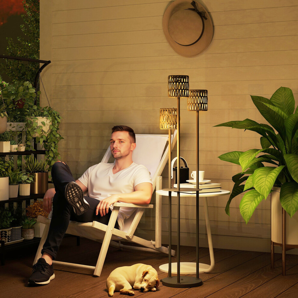 Outsunny 3-Light Solar Rattan Floor Lamp with Shelf, Auto On/Off, Grey