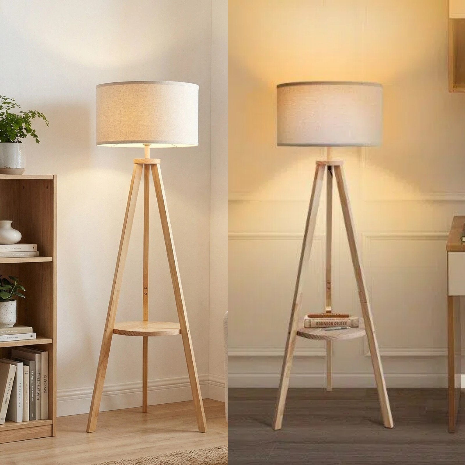 Bedside Light Free Standing Floor Lamp Tripod Holder Storage Shelf Linen Shade