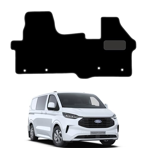 Carpet Floor Mats Fits for Ford Transit Custom (2024+) [Auto] 4 Clips - Custom Van Accessory Tailored fit, Non Slip Mat - Granulated Backing and Edged With Black Nylon Binding - 1 Floor Mat Only