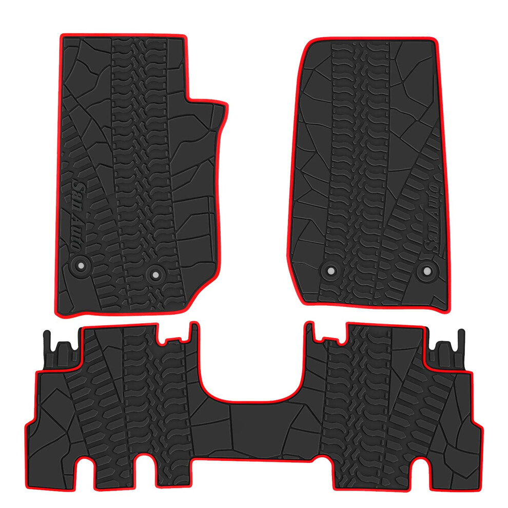 San Auto Car Floor Mat for Jeep Wrangler Sahara Rubicon JK 4 Door 2014 2015 2016 2017 2018 Full Set 4 Pieces Custom Fit Black Red Rubber Auto Floor L