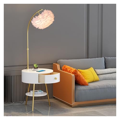 WLLXTK Home Floor Lamp Floor Lamp with Table & Drawers, Farmhouse Narrow Nightstand, Wooden End Side Table Floor Lamp, Adjustable Reading Lamp for Bedroom, Living Room, Office Standing Lamp