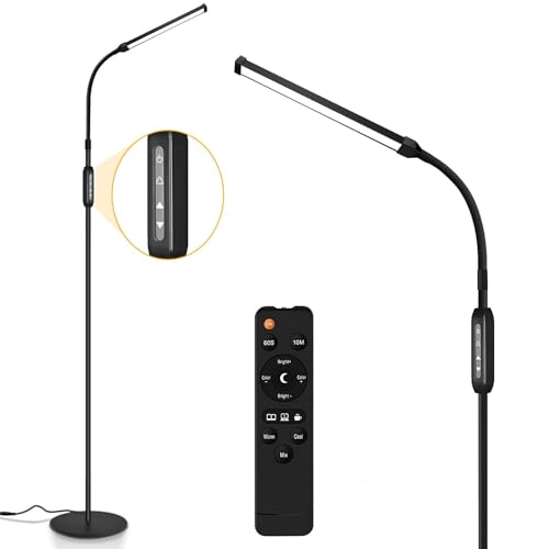 LED Floor Lamp 18W, Dimmable Modern Standing Light with 4 Color Temperature, Remote & Touch Control, 360° Adjustable Gooseneck, 1Hour Timer, Reading Floor Lamp For Living Room Bedroom Office(Black)