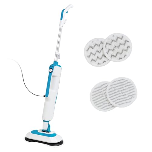Russell Hobbs Floor Polisher and Steam Mop in Teal & White with 30-Second Heat-up Time, 380ml Tank, 1.5kW, 7M Cord, 4x Washable Pads & Wall Mounting Kit, Anti-Scale Filter, RHSFP7001