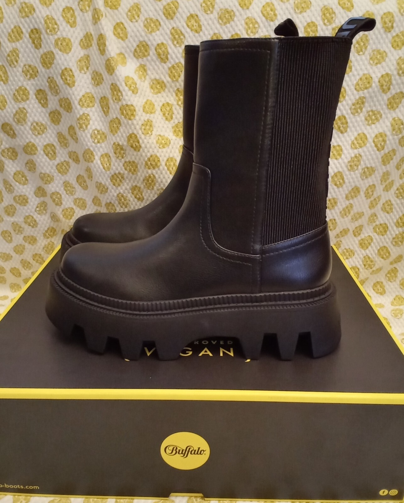 Buffalo Flora Chelsea Hi Vegan Women's Black Platform Boots - Size 7uk New Rare