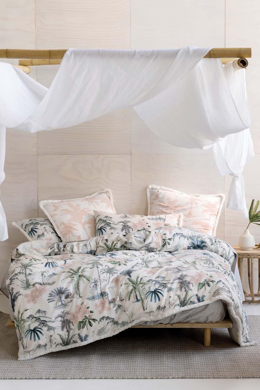 Sleepdown Botanical Leaves Floral Blush Pink Blue Reversible Duvet Cover Quilt P
