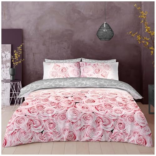 GC GAVENO CAVAILIA Duvet Cover Pink, Reversible Rose Bedding Double Bed Set, Warm Floral Quilt Covers, 701071, Pink-bellerose