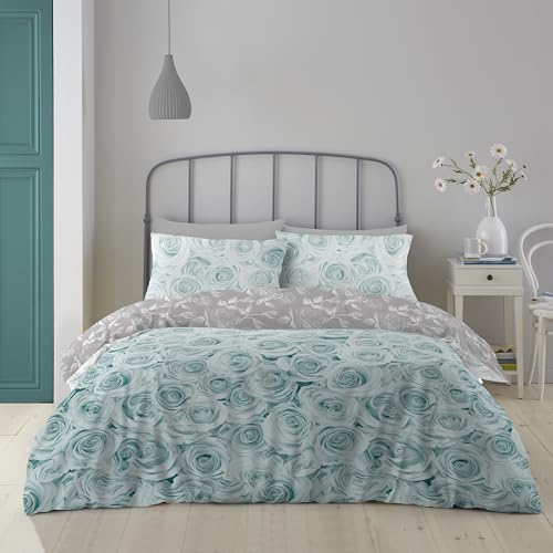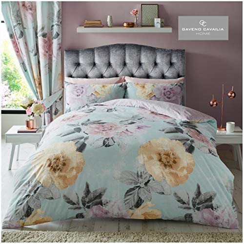 GC GAVENO CAVAILIA Printed Duvet Cover Duck Egg, Reversible Rose Bedding Double Bed Set, Warm Floral Quilt Covers
