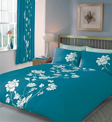 GC GAVENO CAVAILIA Luxury Geometric Duvet, Floral Quilt Set, Polycotton Bed Covers, Chantilly-Teal, King