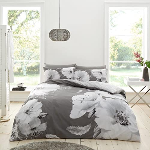 GC GAVENO CAVAILIA Premium Floral Duvet Cover Sets, Reversible Blossom Bedding Double Bed Set, Printed Quilt Covers, Grey