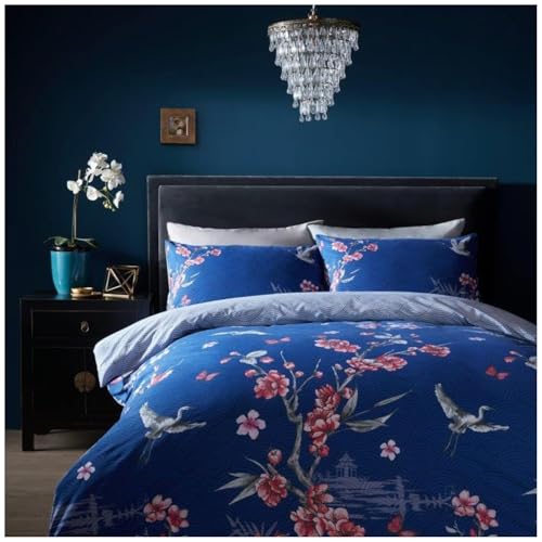 GC GAVENO CAVAILIA Floral King Size Duvet Cover Sets | Reversible Hallie Rose Birds Bedding Set | Breathable Quilt Covers | Navy