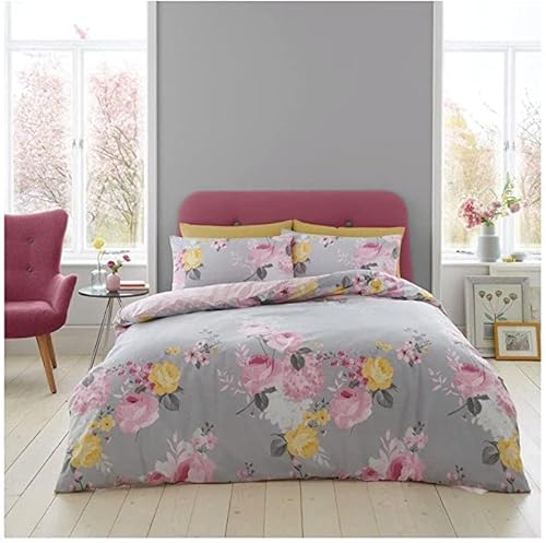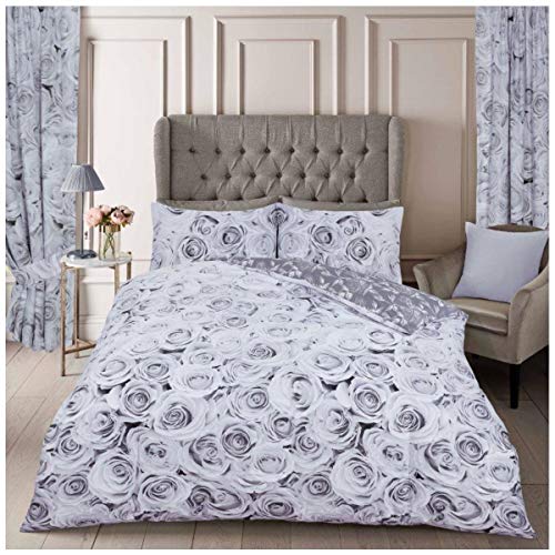GC GAVENO CAVAILIA Printed Duvet Cover Grey, Reversible Rose Bedding Double Bed Set, Warm Floral Quilt Covers