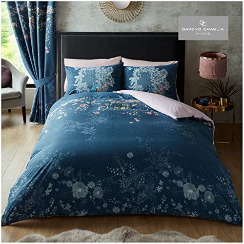 GC GAVENO CAVAILIA Luxury Geometric Duvet, Floral Quilt Set, Polycotton Bed Covers, Bella-Navy, Double