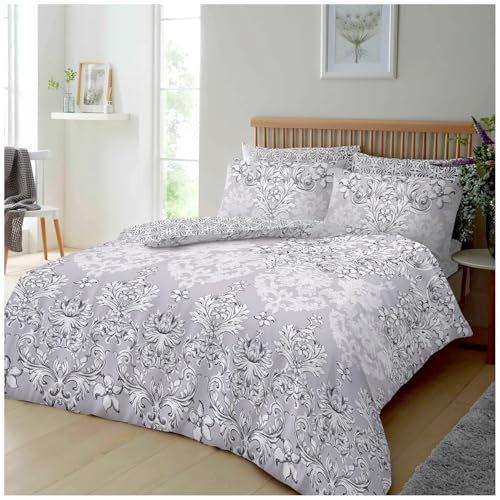 GC GAVENO CAVAILIA Luxury Geometric Duvet, Floral Quilt Set, Polycotton Bed Covers, Cecilia-Grey, Double