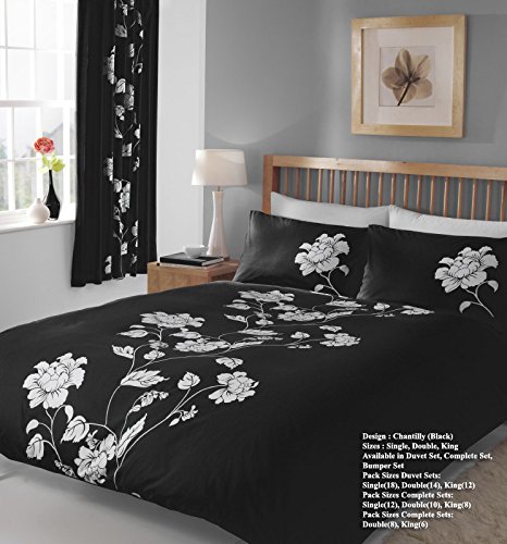 GC GAVENO CAVAILIA Luxury Geometric Duvet, Floral Quilt Set, Polycotton Bed Covers, Chantilly-Black, Double