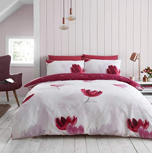 GC GAVENO CAVAILIA Botanical Duvet Cover Single, 2Pcs Polycotton Comforter Covers, Reversible Floral Bedding & Linen, Red