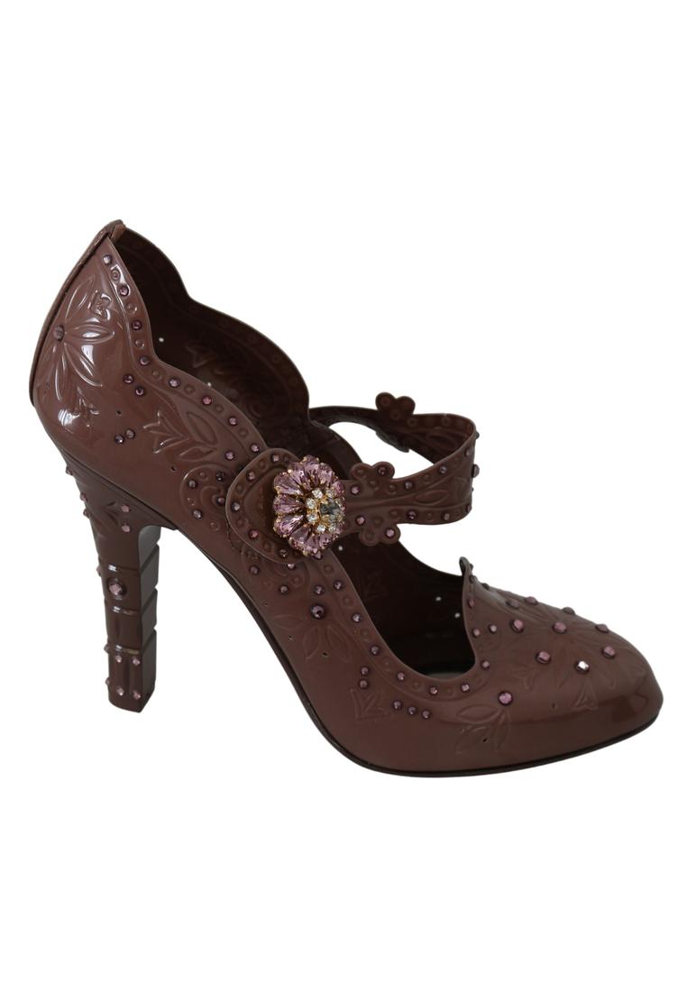 Dolce & Gabbana WoMens Brown Floral Crystal Heels CINDERELLA Shoes - Size EU 39