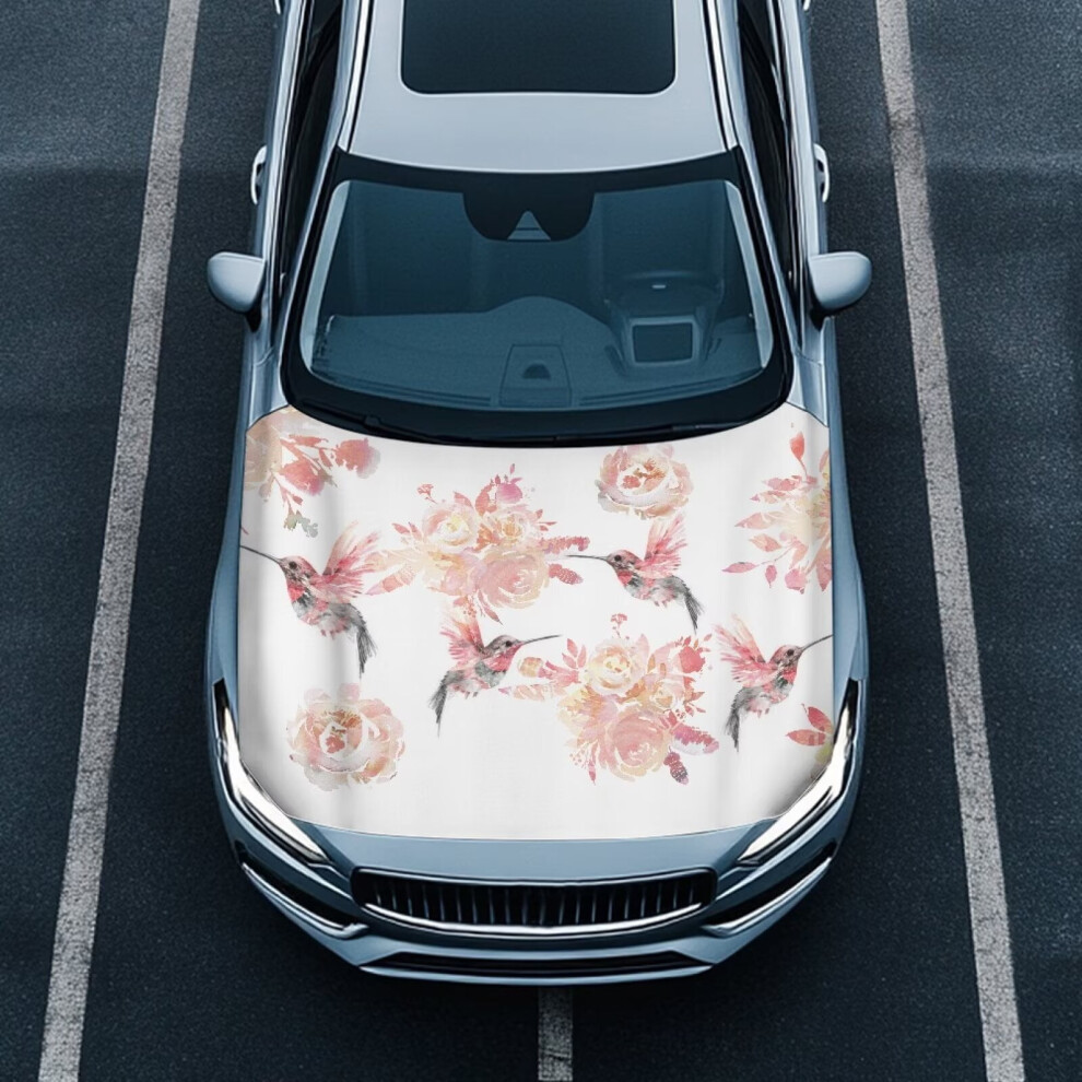 Floral Hummingbird Car Cover â Stretchable Polyester Hood Wrap for Trucks, Cars, SUVs, Vans â Compatible with All Vehicles