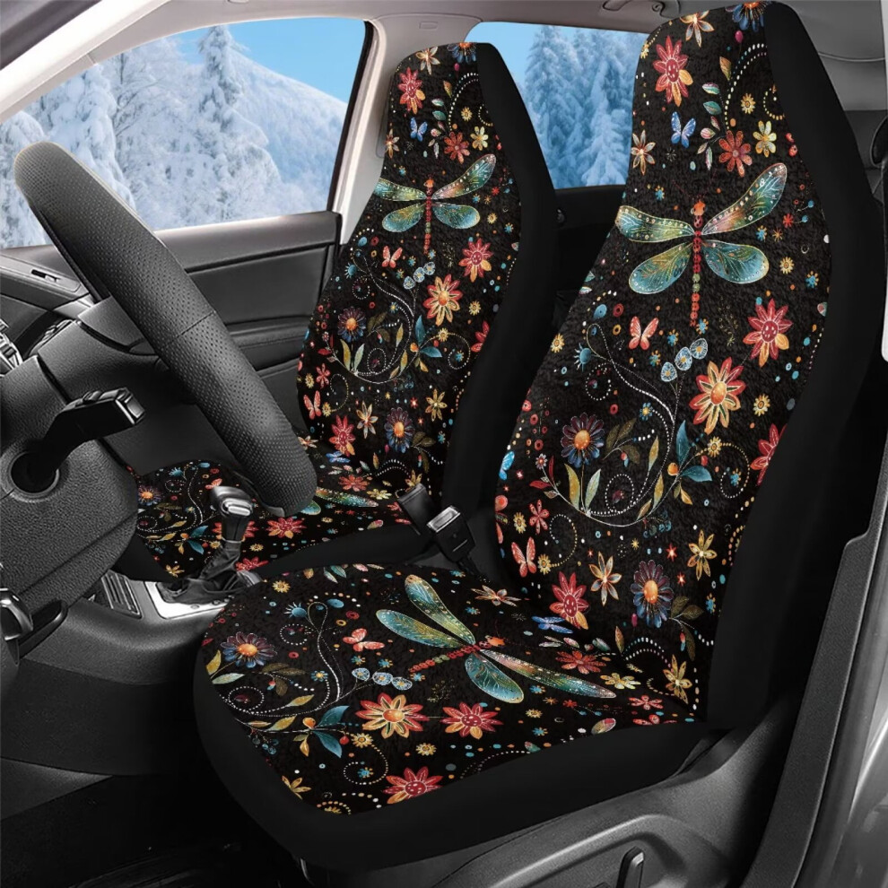 2 PCS Floral Dragonfly Car Seat Covers for Front Seats â Compatible with Most Cars, Sedans, SUVs, Pickups & Vans