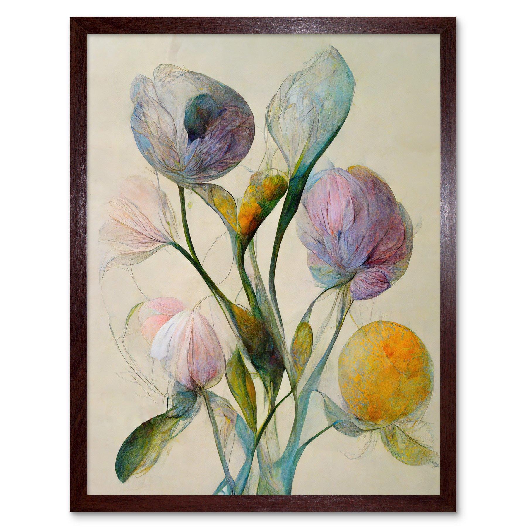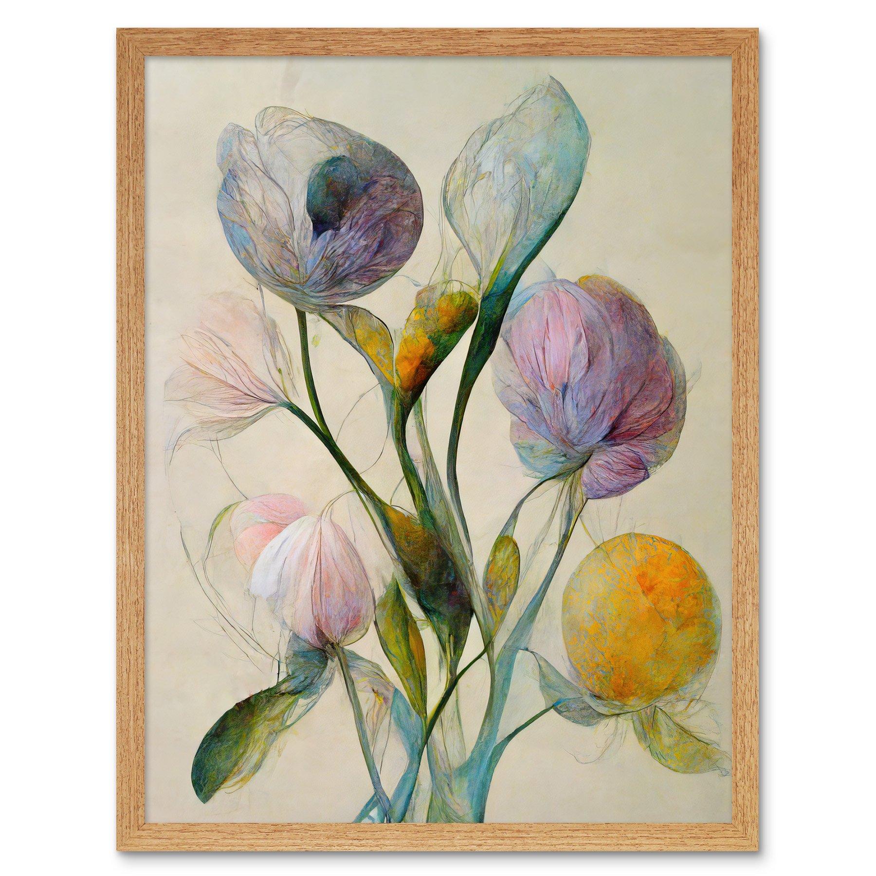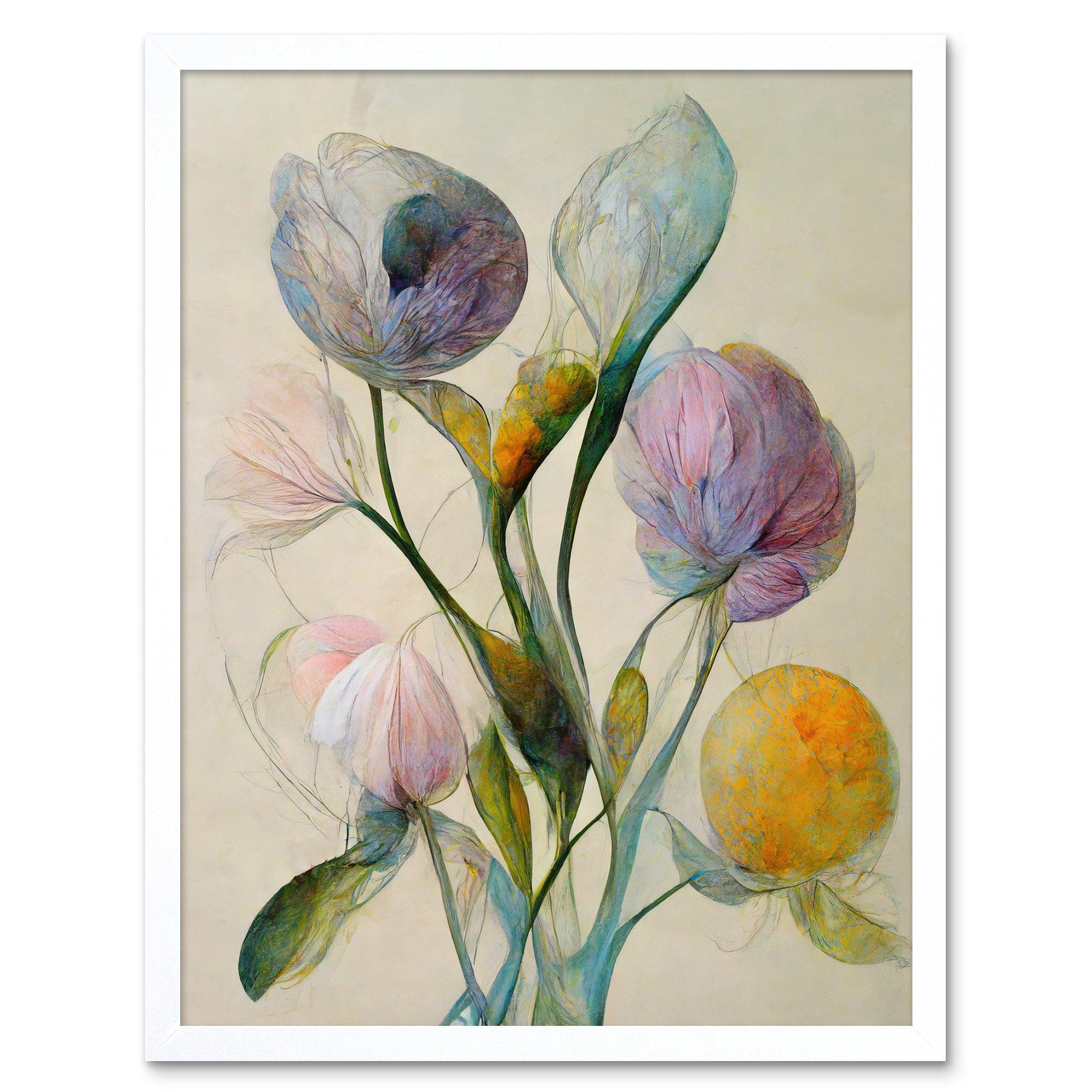 Modern Elegant Pastel Floral Bouquet Abstract Flowers Art Print Framed Poster Wall Decor 12x16 inch