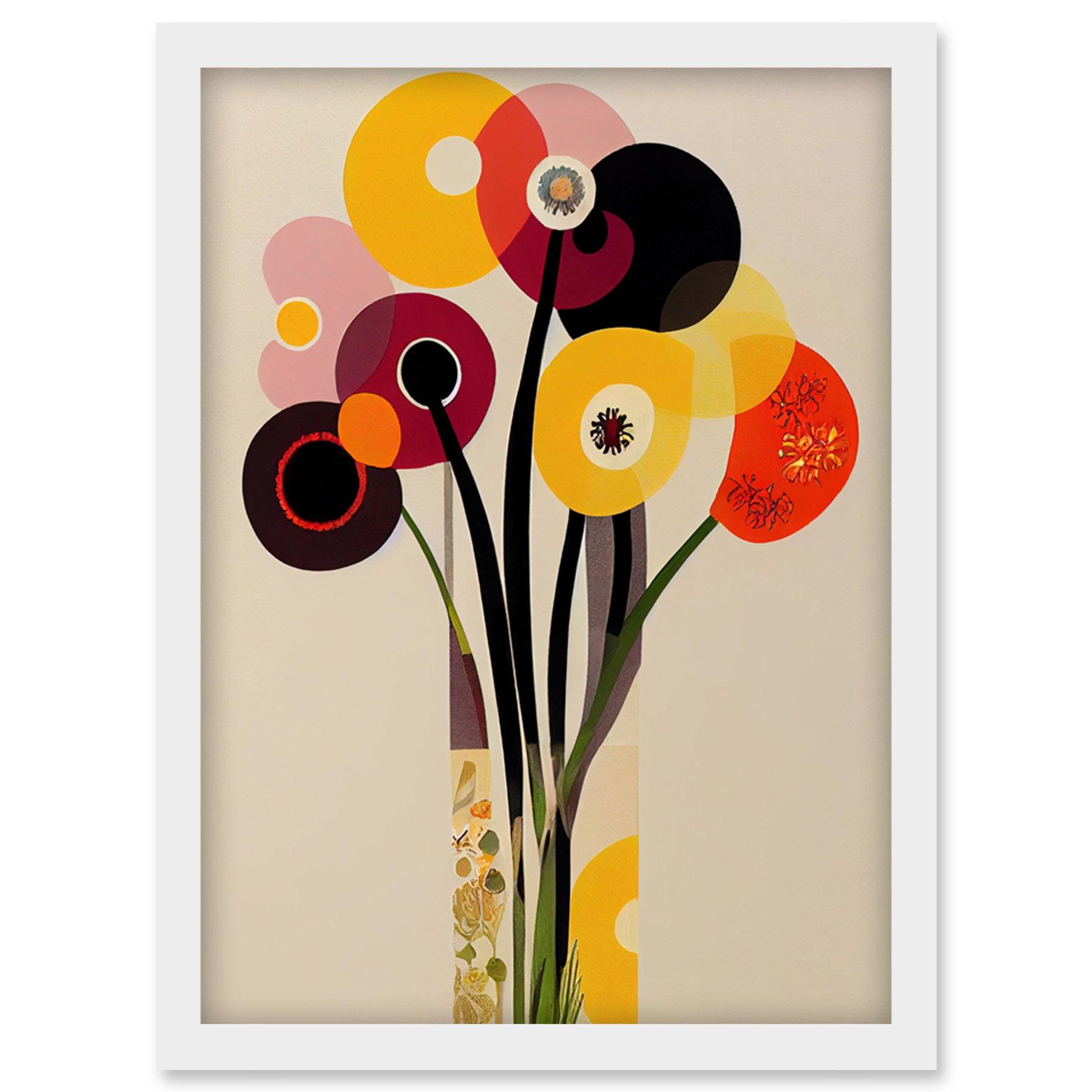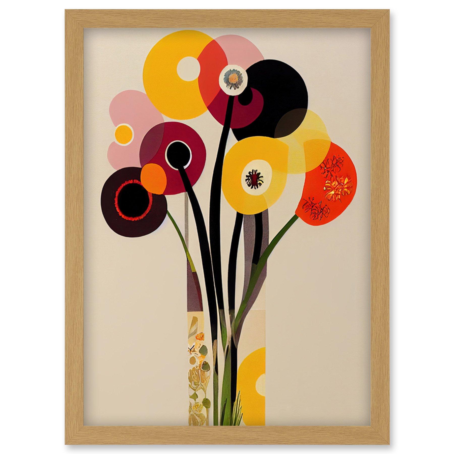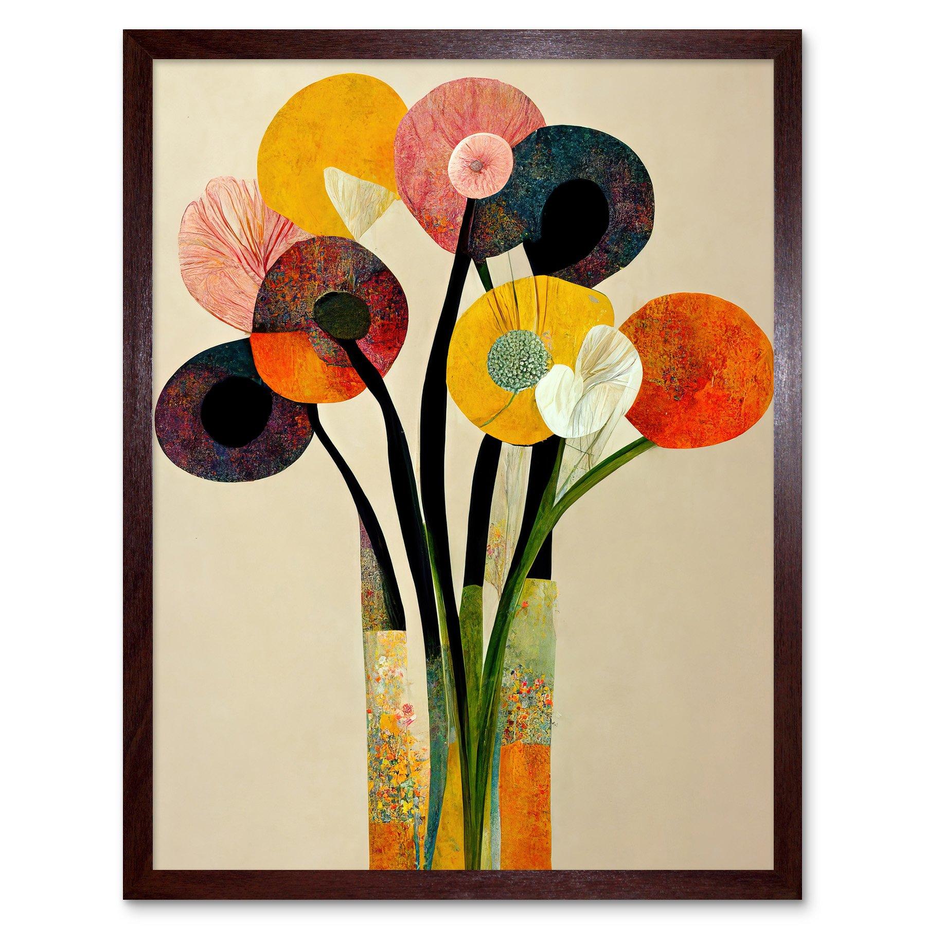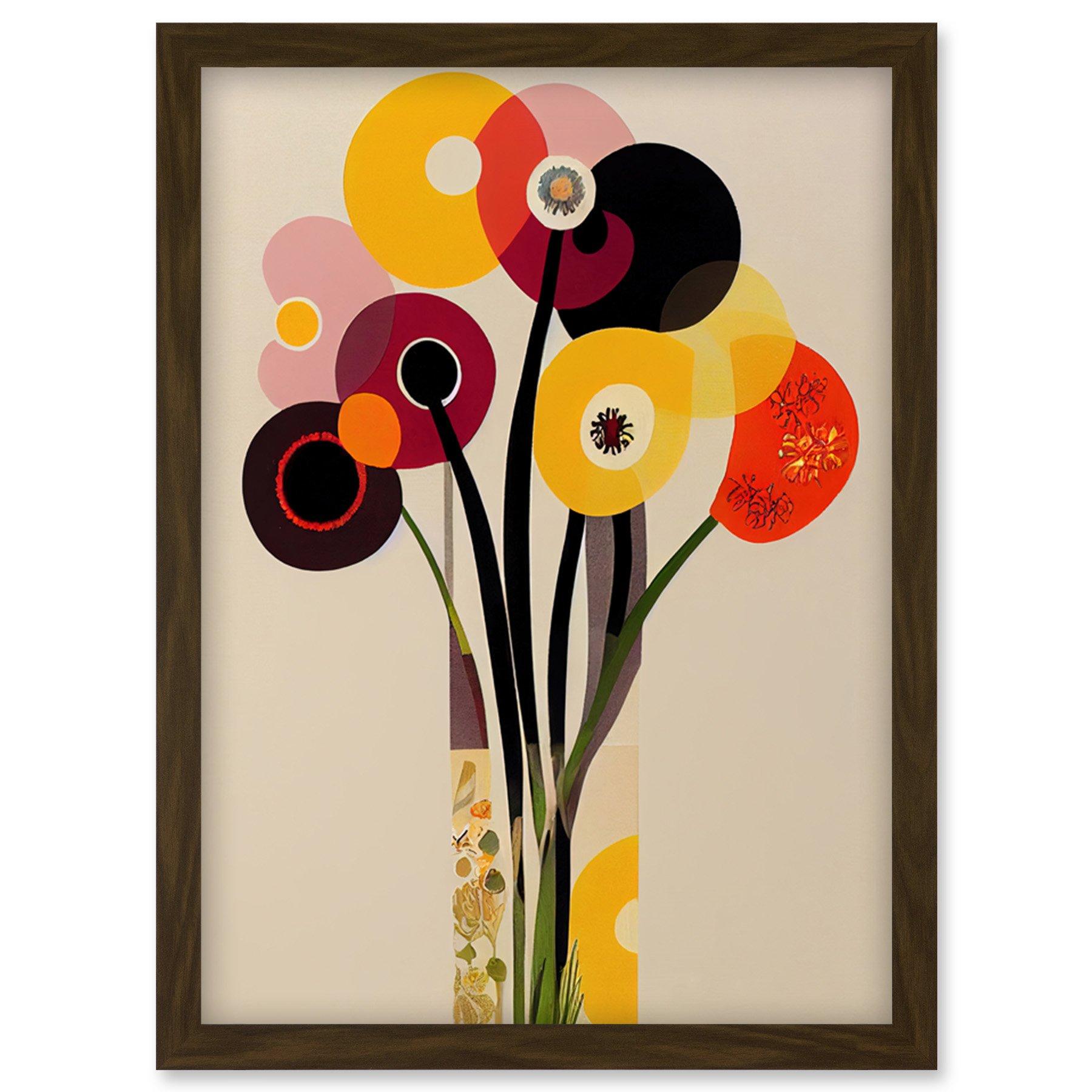 Abstract Retro Spring Summer Flowers Floral Yellow Burgundy Orange Bouquet Vase Artwork Framed Wall Art Print A4