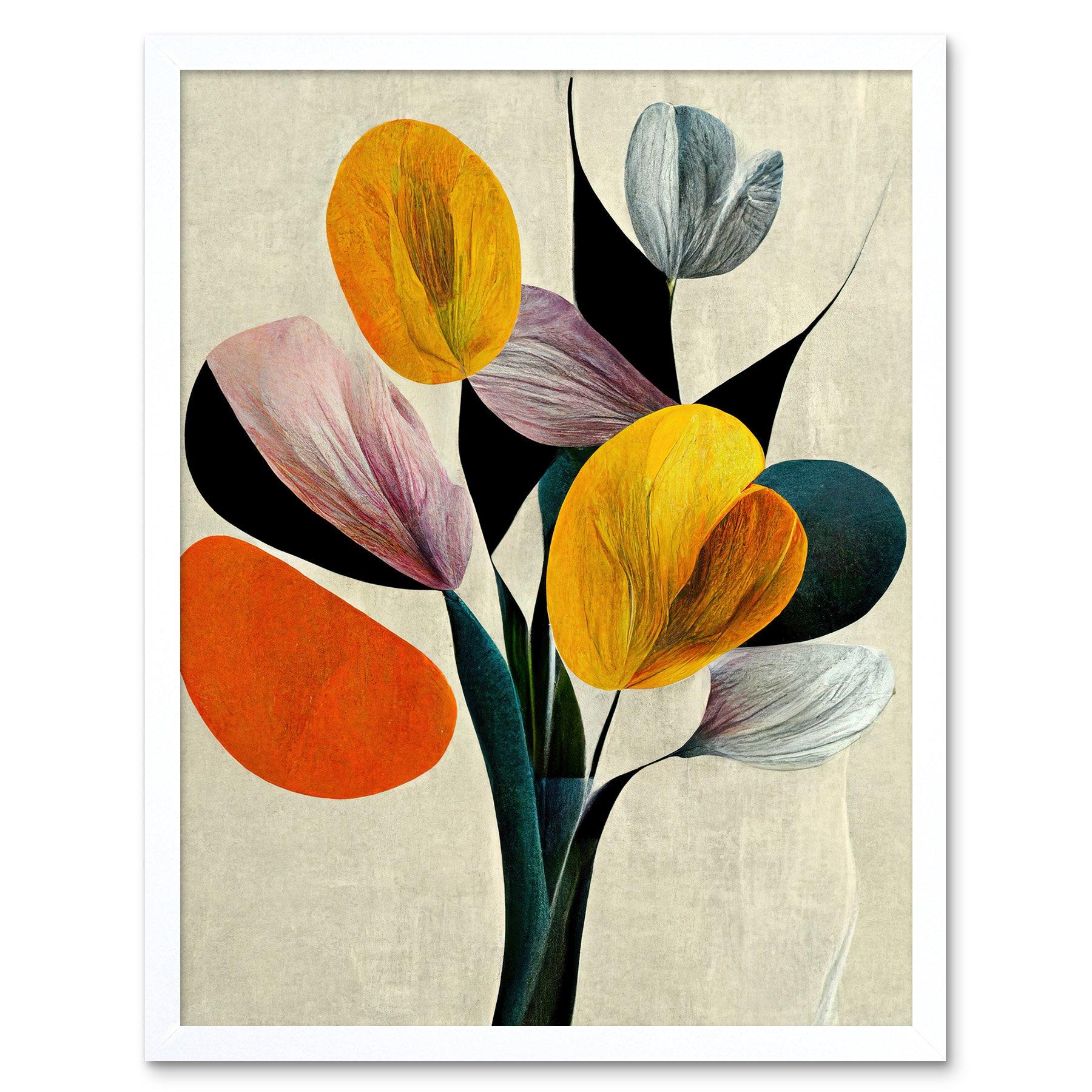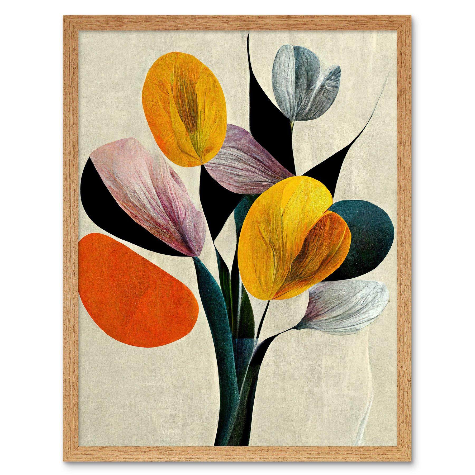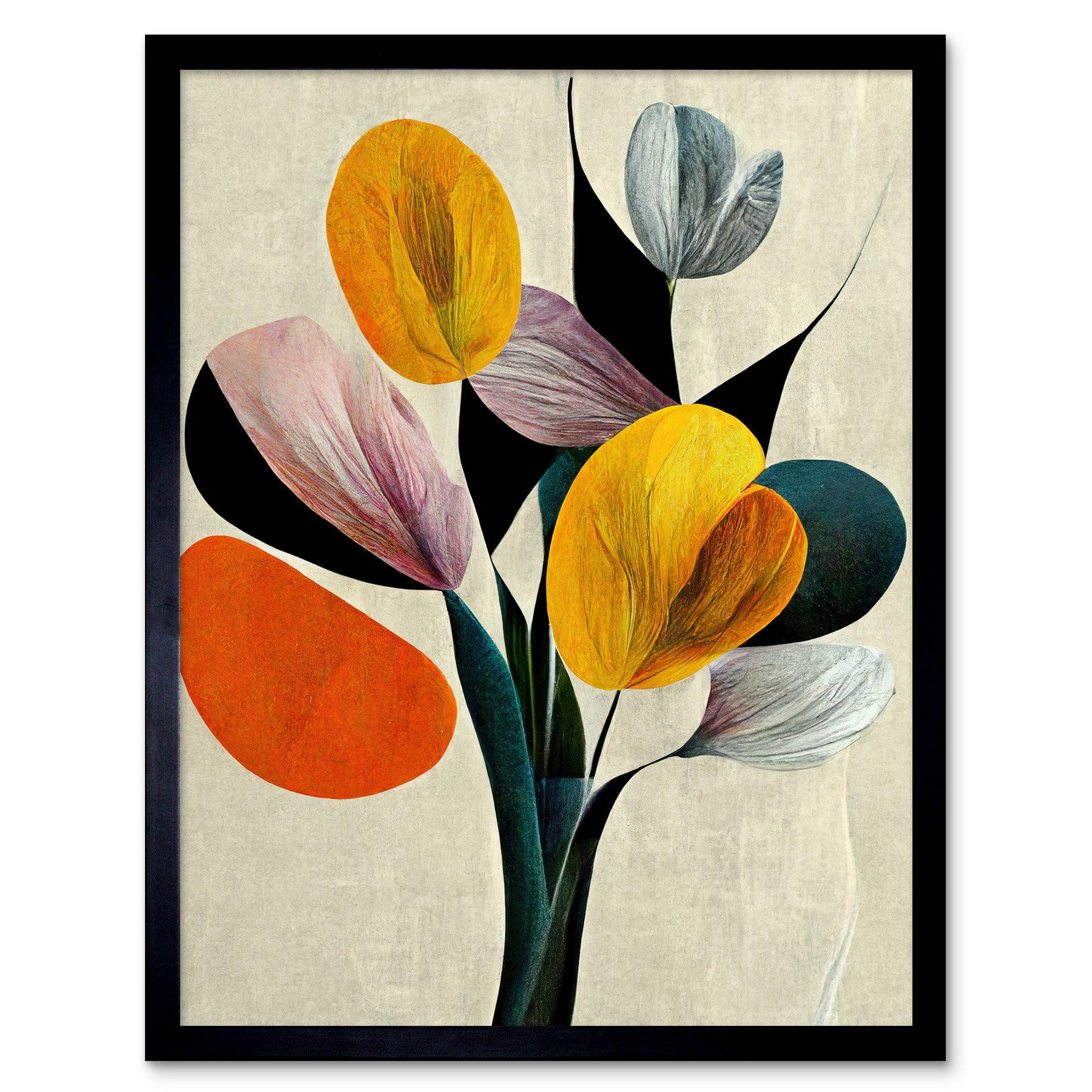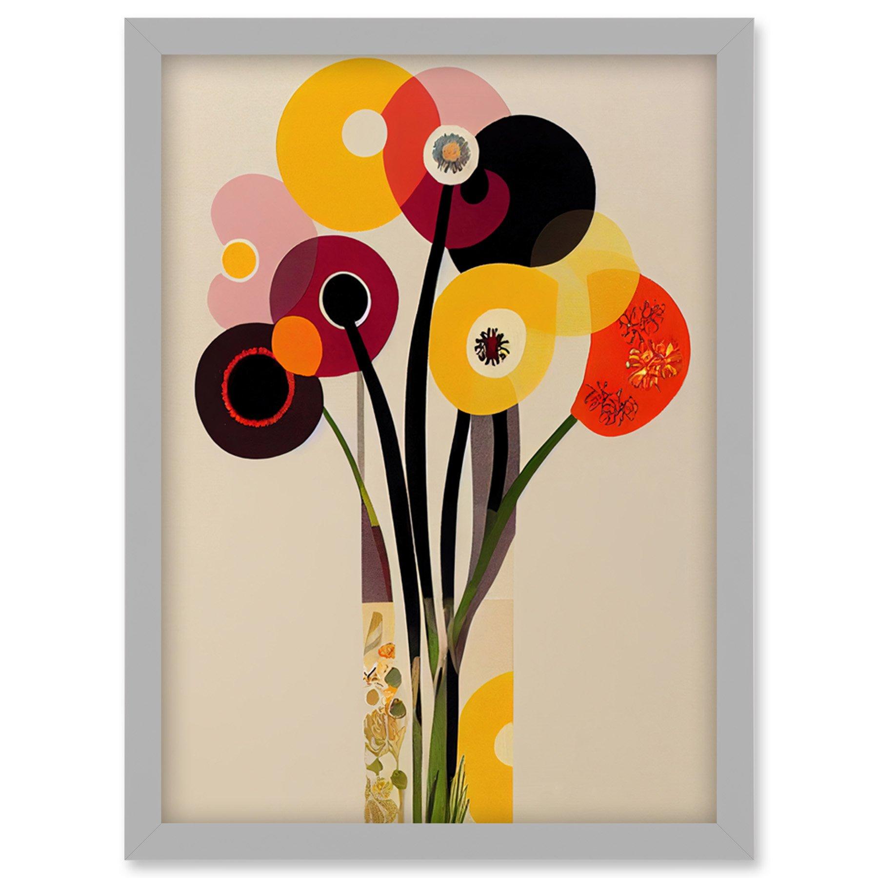 Abstract Retro Spring Summer Flowers Floral Yellow Burgundy Orange Bouquet Vase Artwork Framed Wall Art Print A4