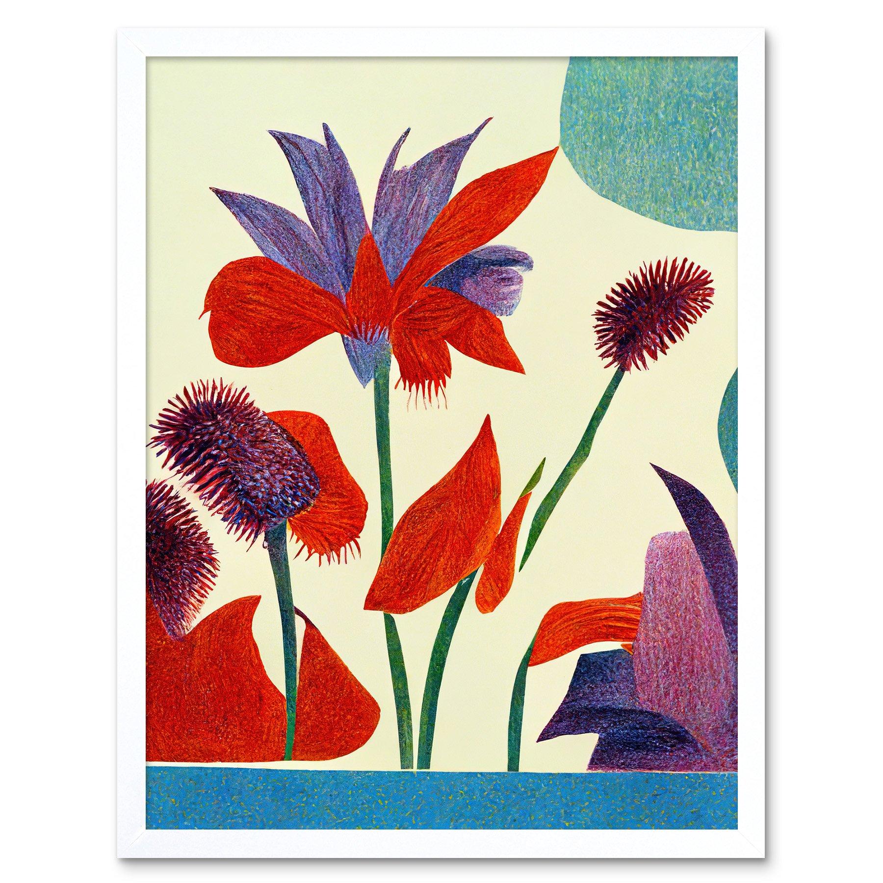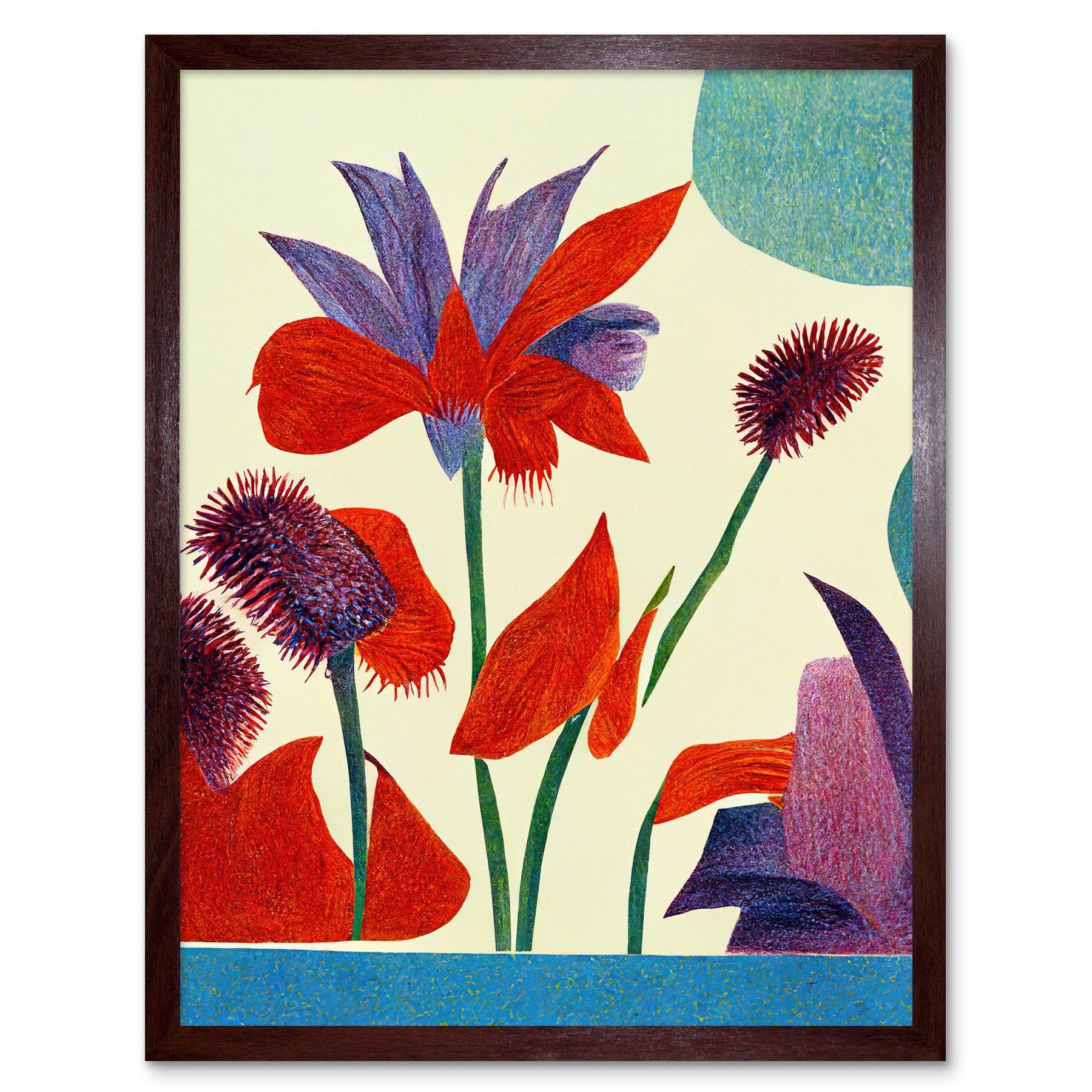 Abstract Red Purple Jungle Flowers Floral Art Print Framed Poster Wall Decor 12x16 inch