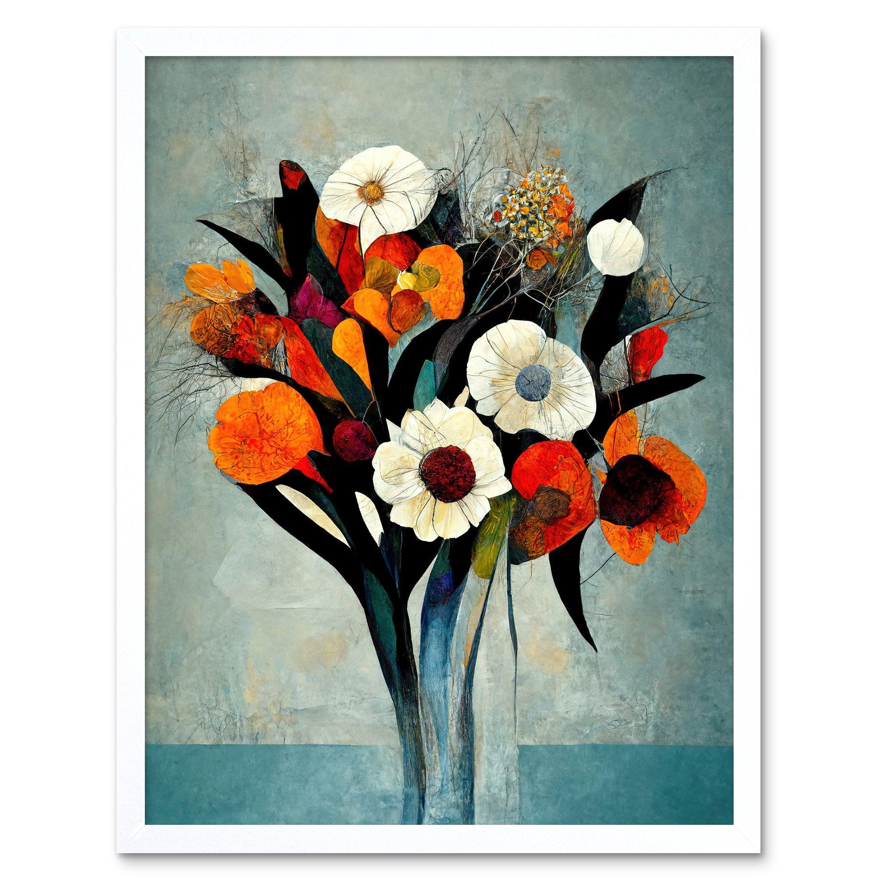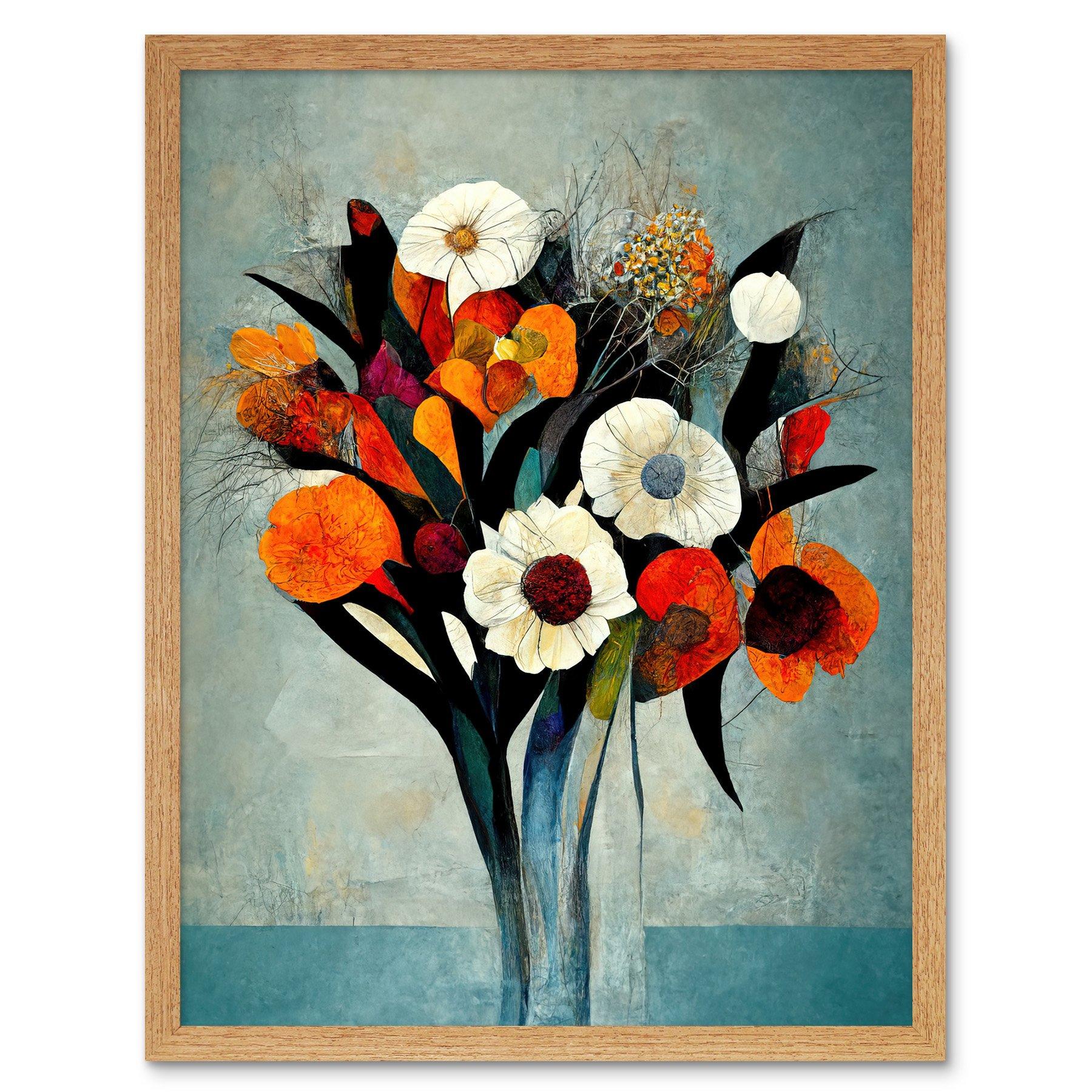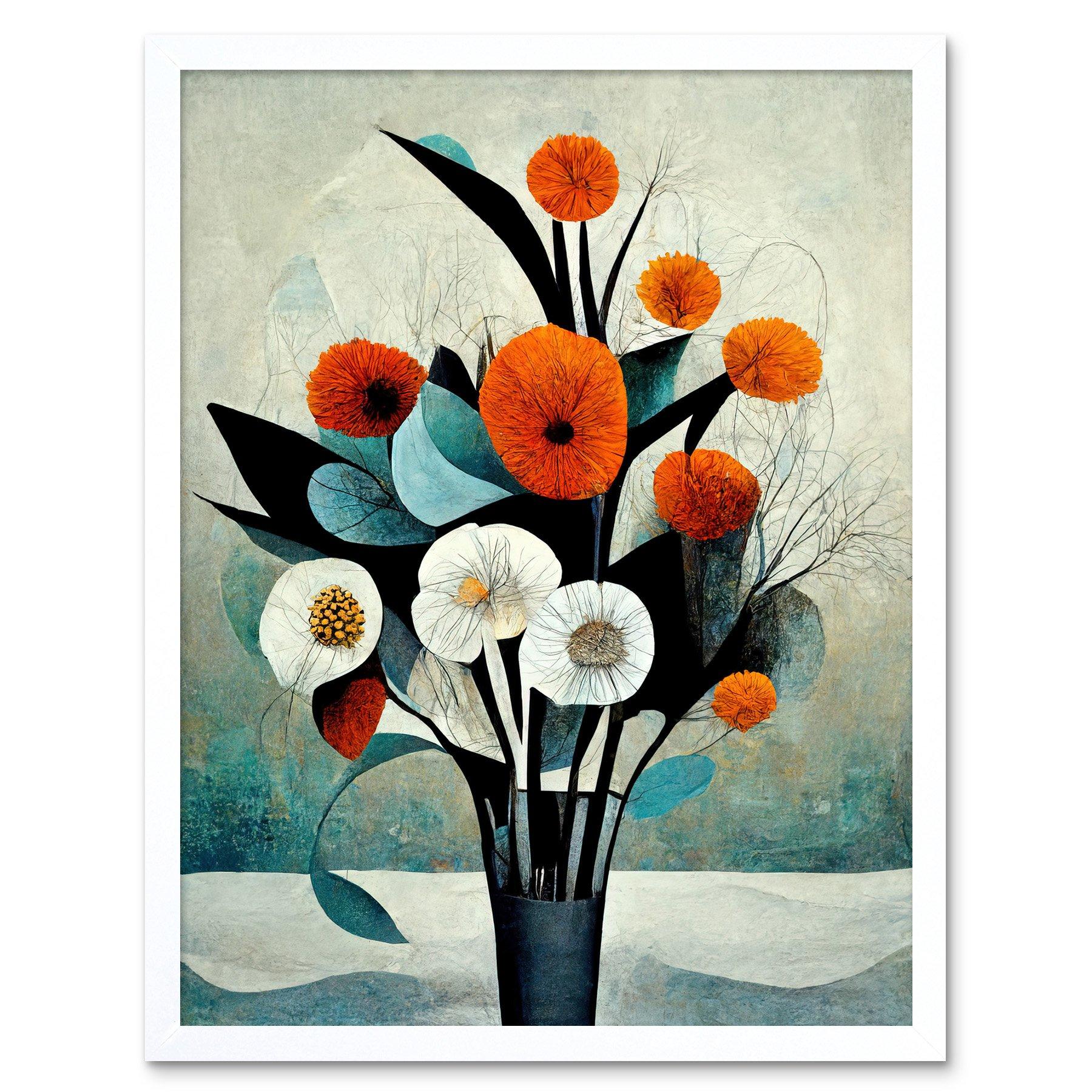 Flowers Floral Display Bouquet Modern Abstract Teal Orange Art Print Framed Poster Wall Decor 12x16 inch