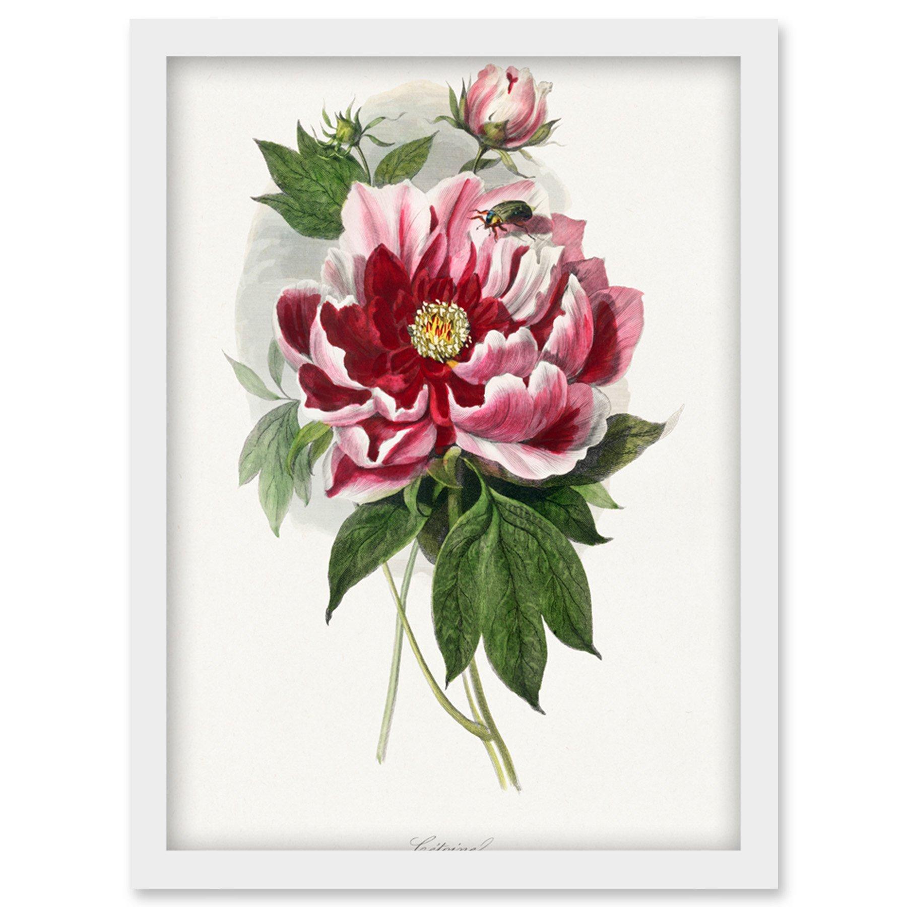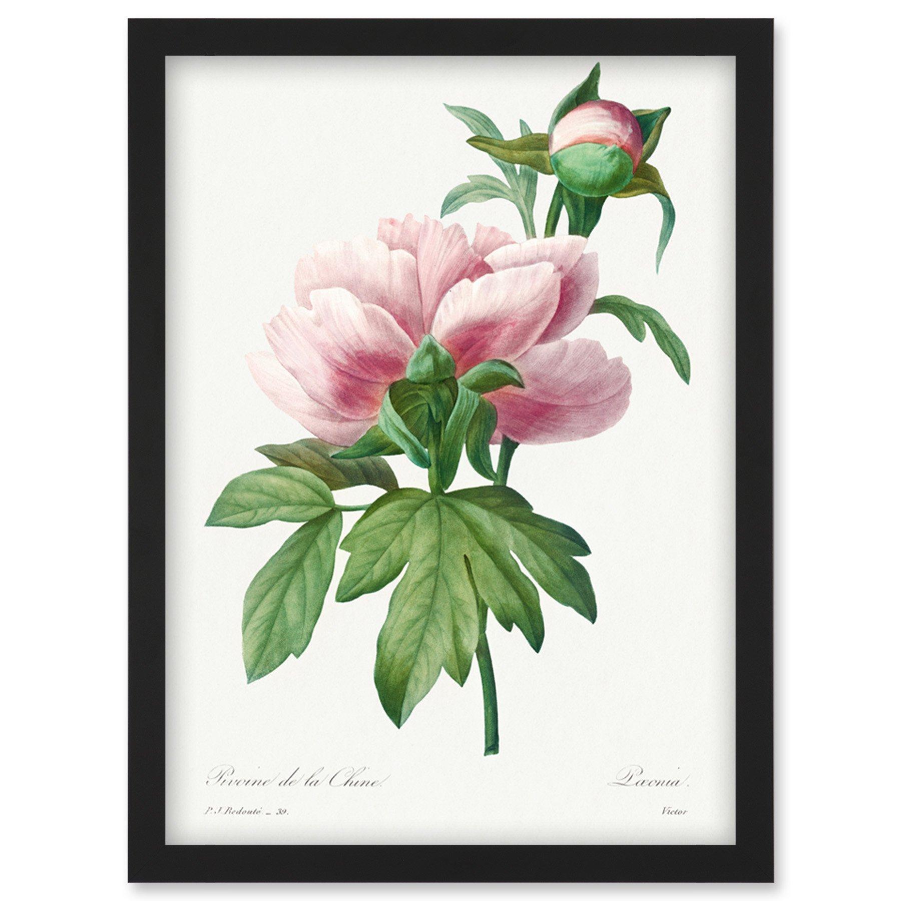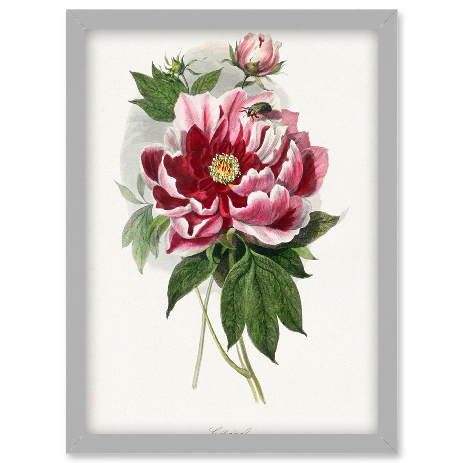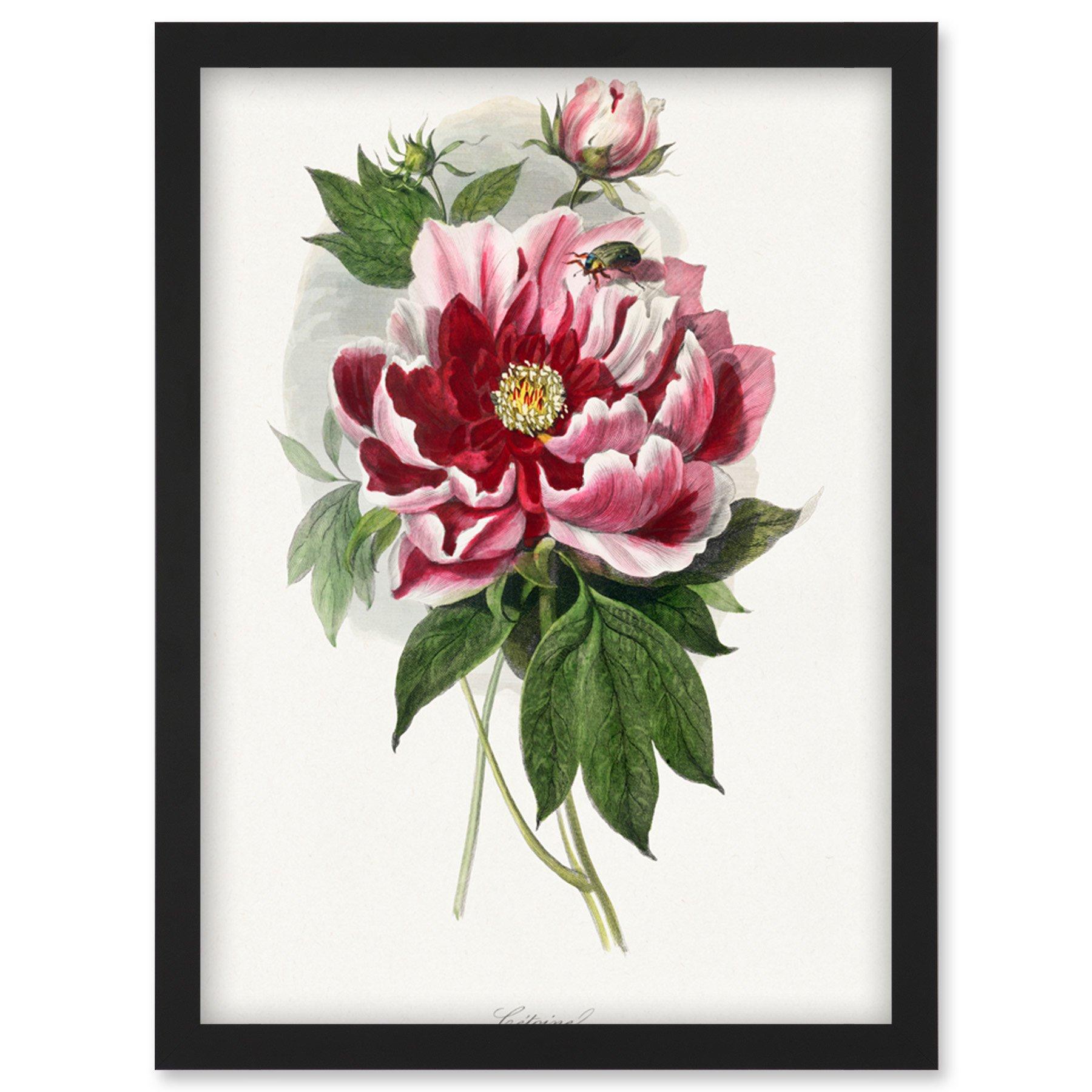 Vintage Pink Red Peony Bloom Flowers Floral Classic Pretty Illustration Artwork Framed Wall Art Print A4