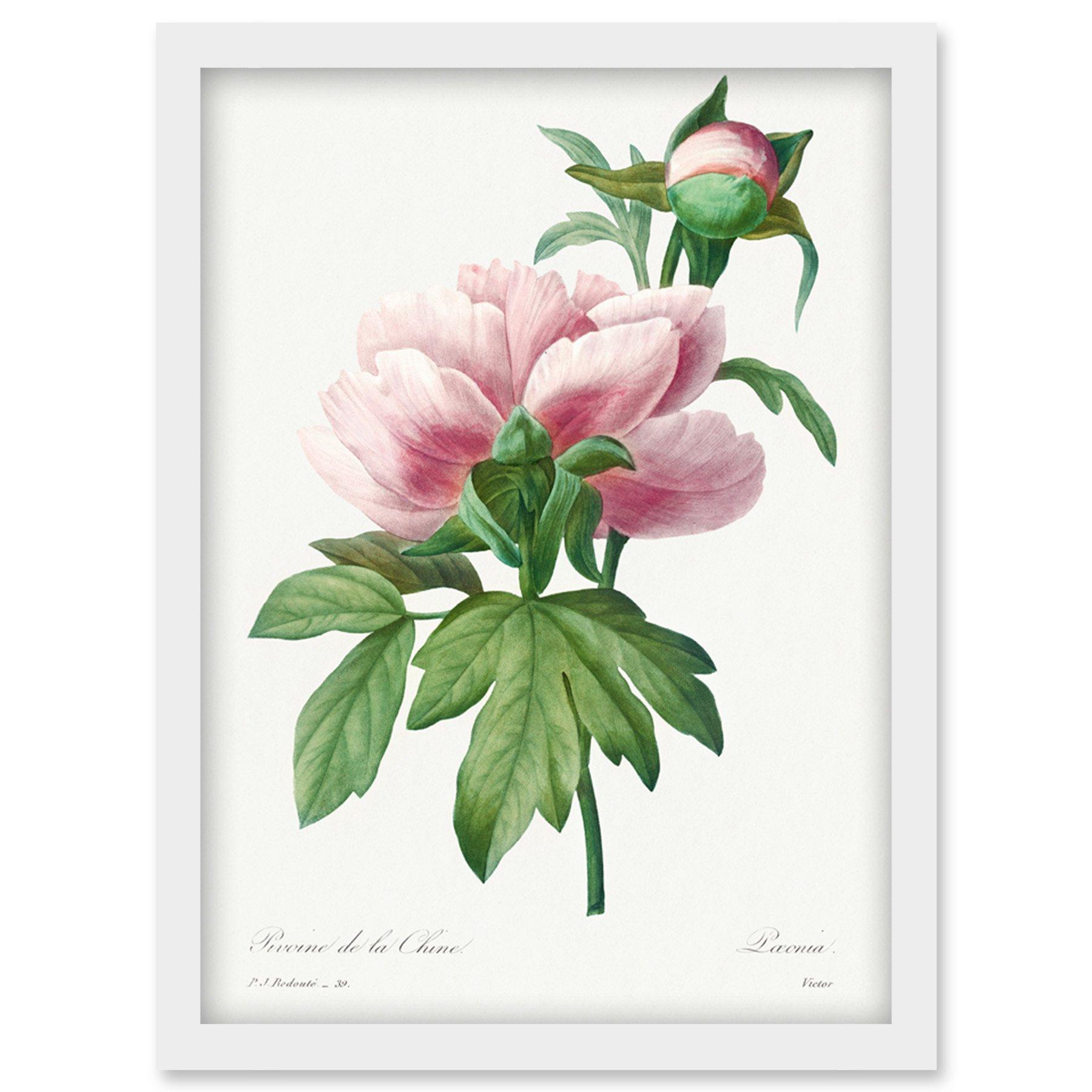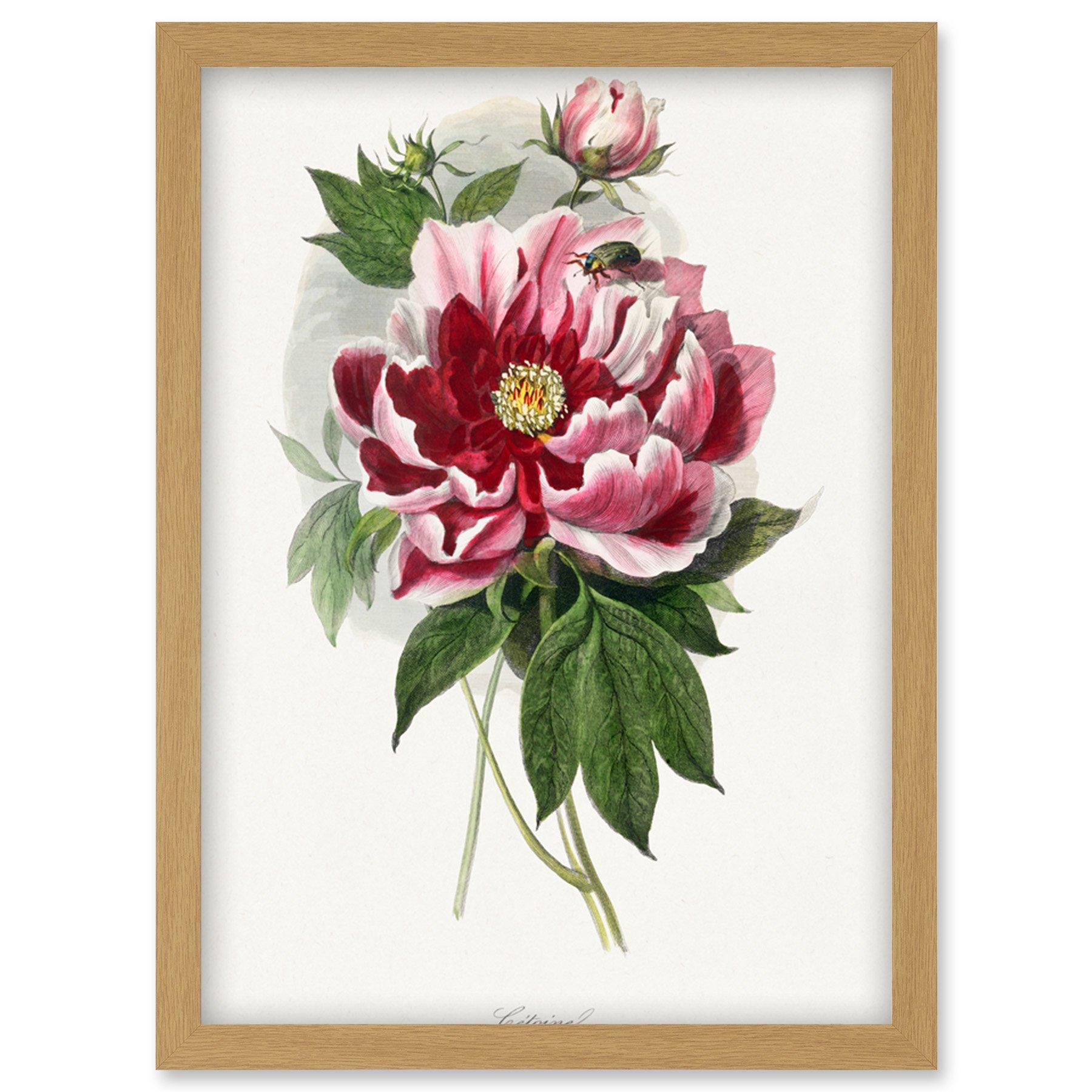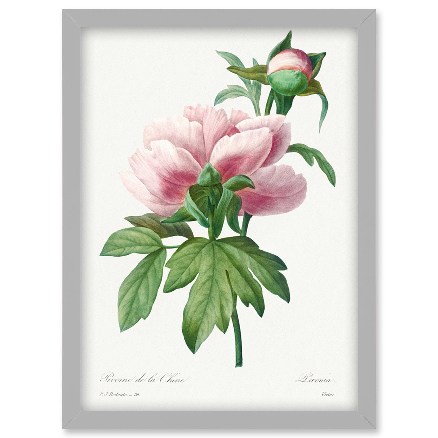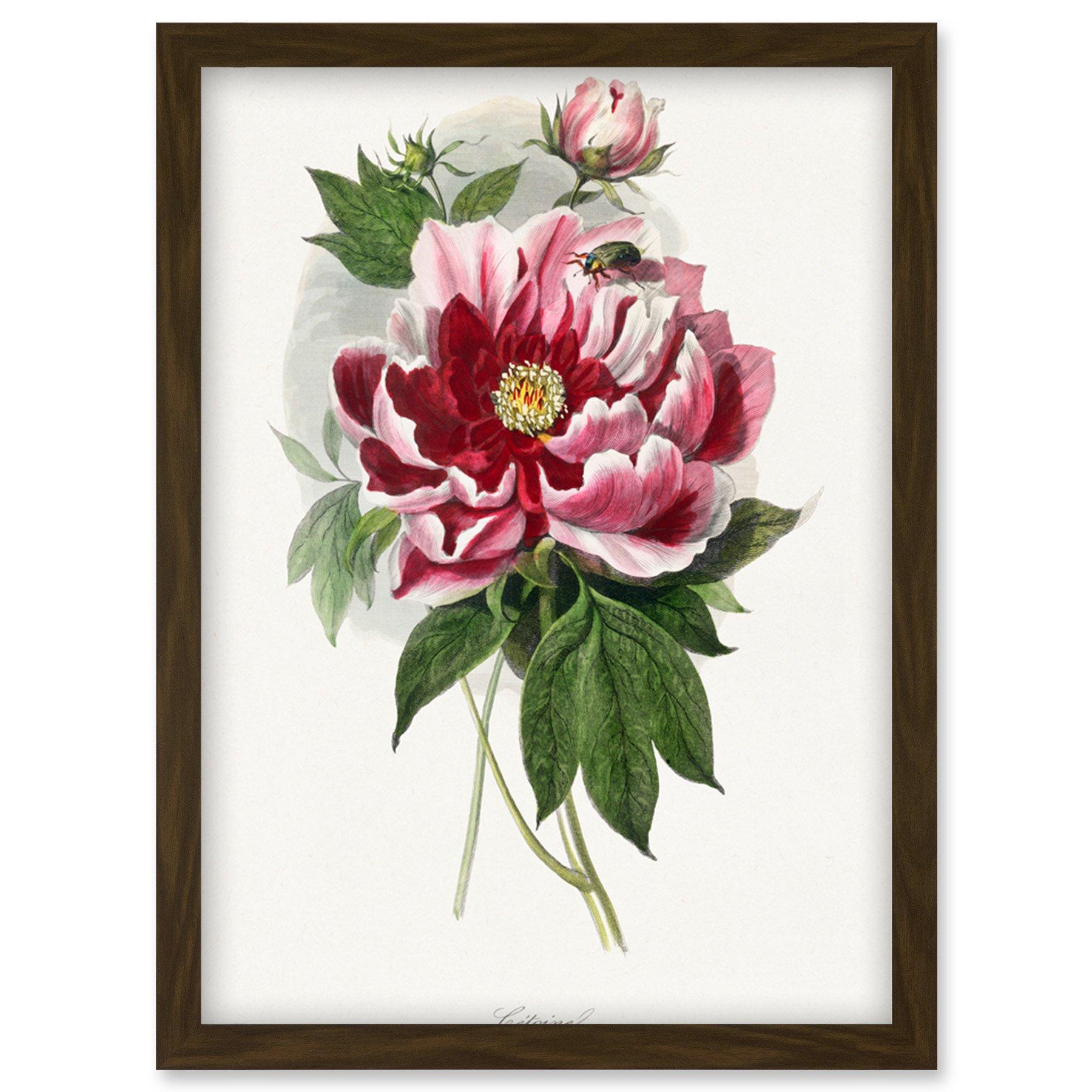 Vintage Pink Red Peony Bloom Flowers Floral Classic Pretty Illustration Artwork Framed Wall Art Print A4