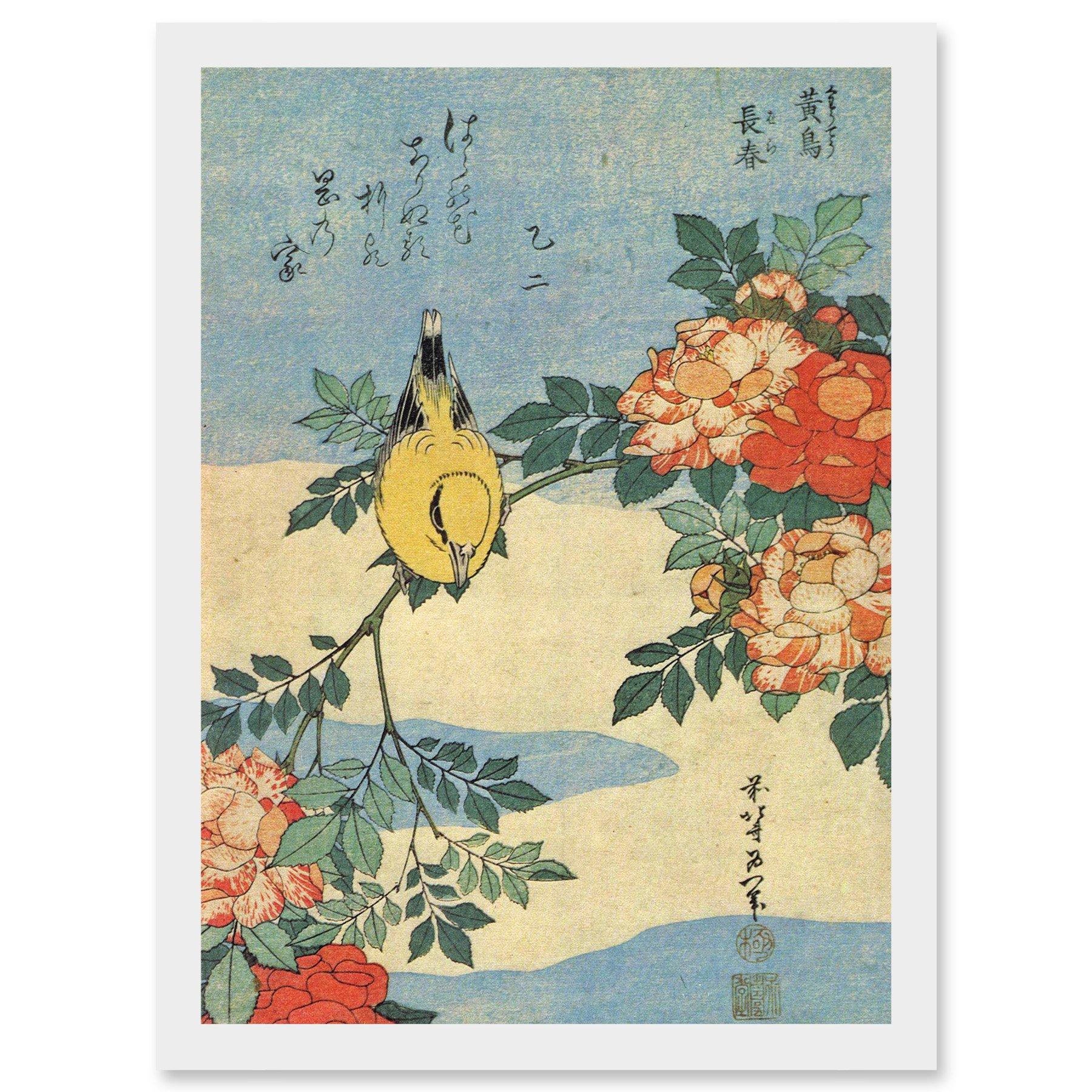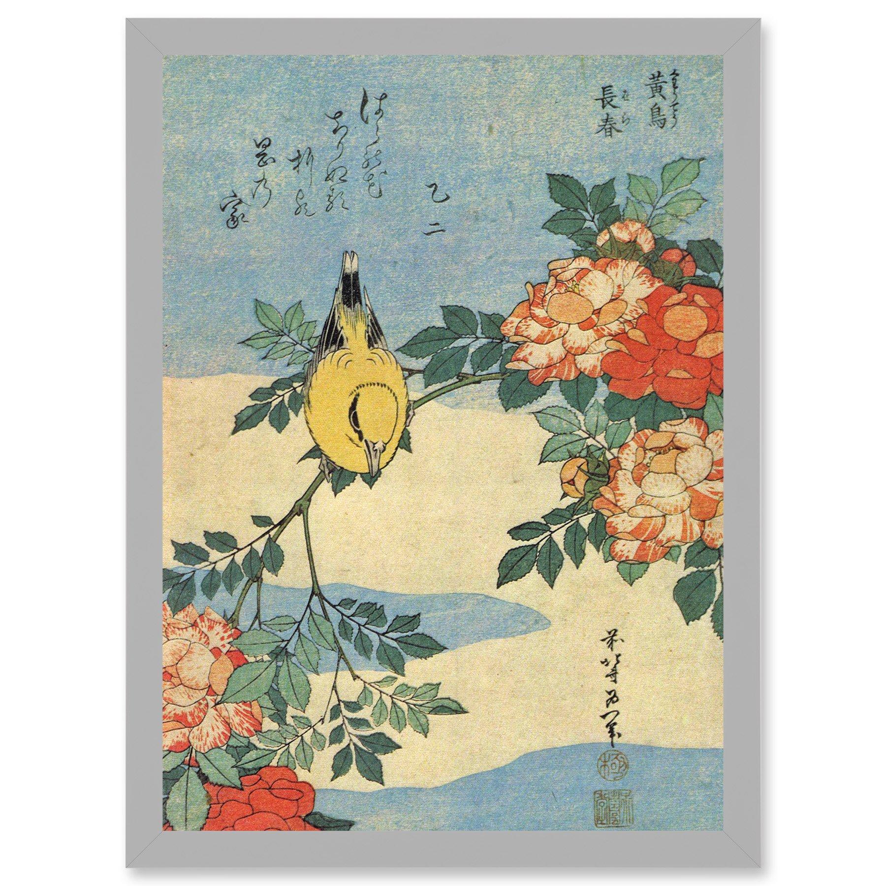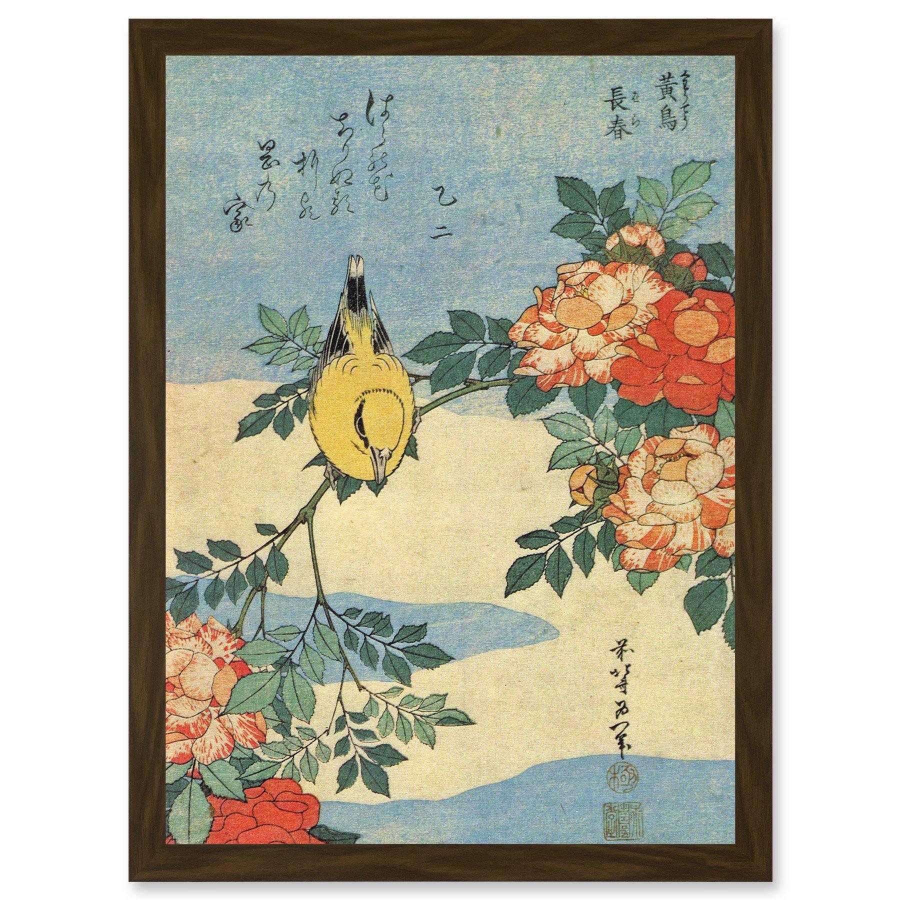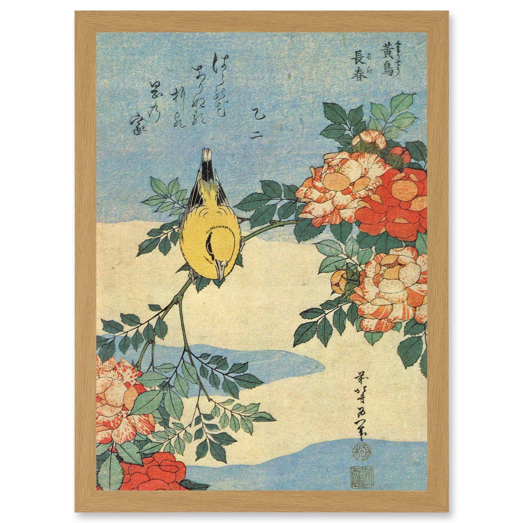 Painting Japan Yellow Bird Flowers Floral Vintage A4 Artwork Framed Wall Art Print