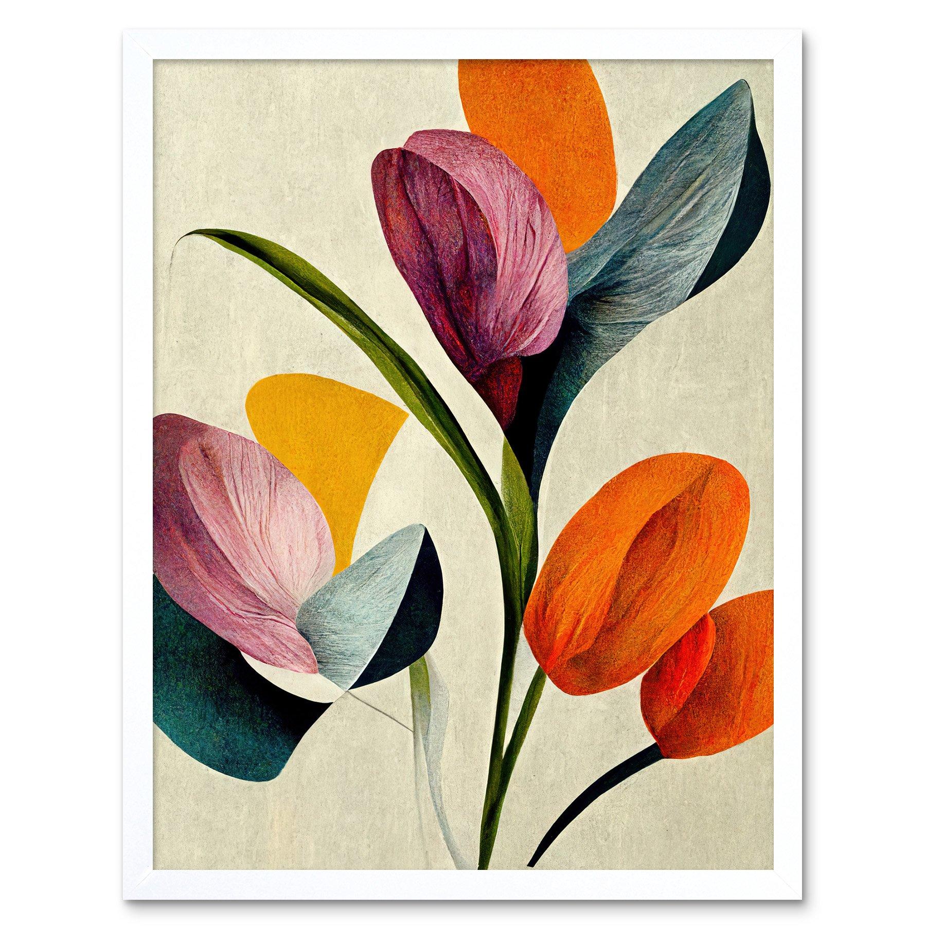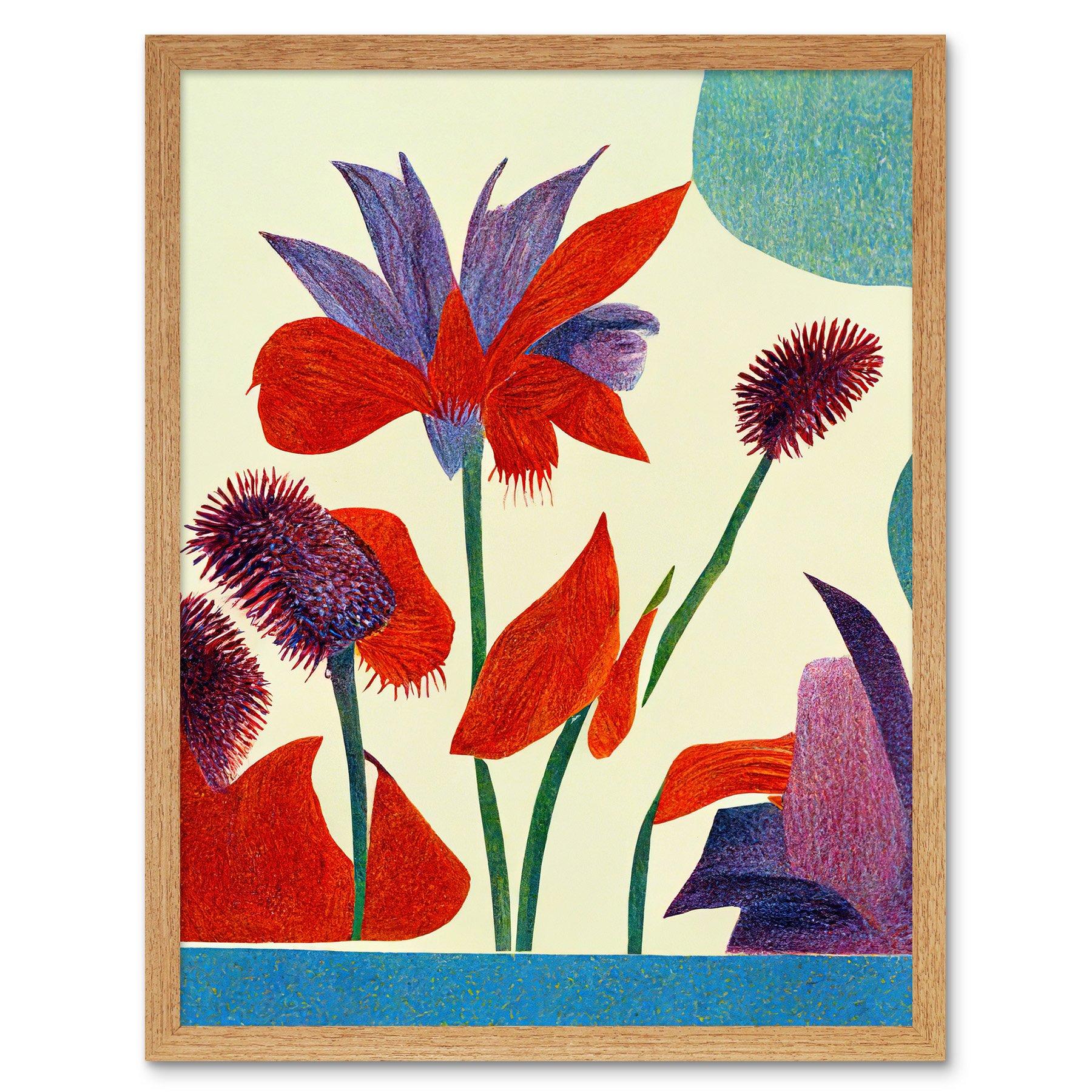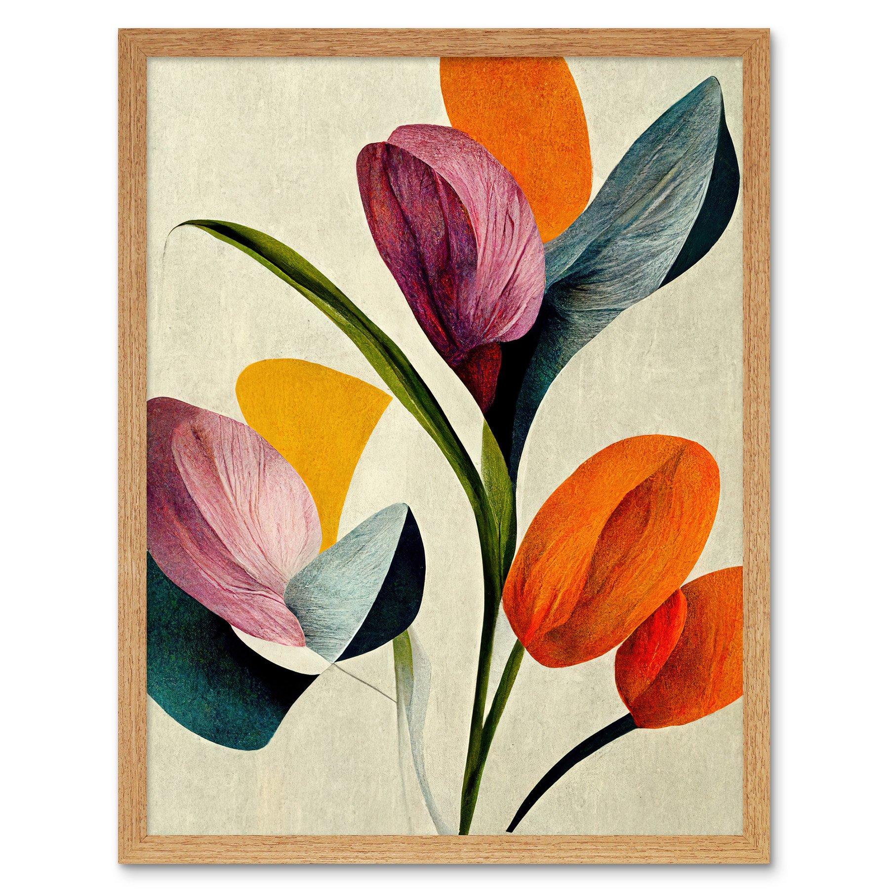 Poppy Flowers Colourful Floral Abstract Art Print Framed Poster Wall Decor 12x16 inch