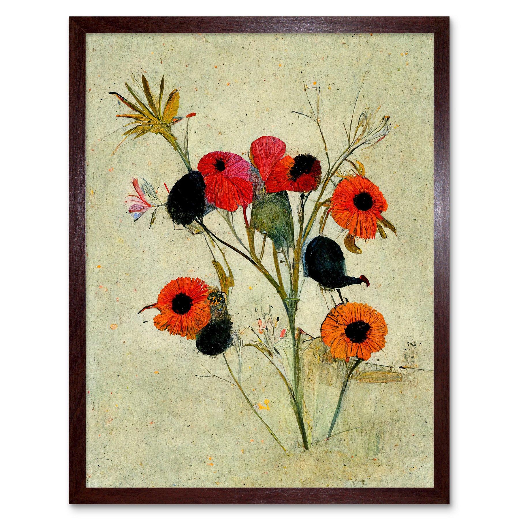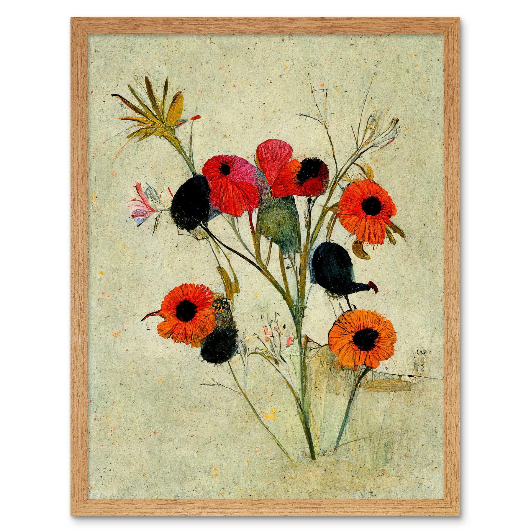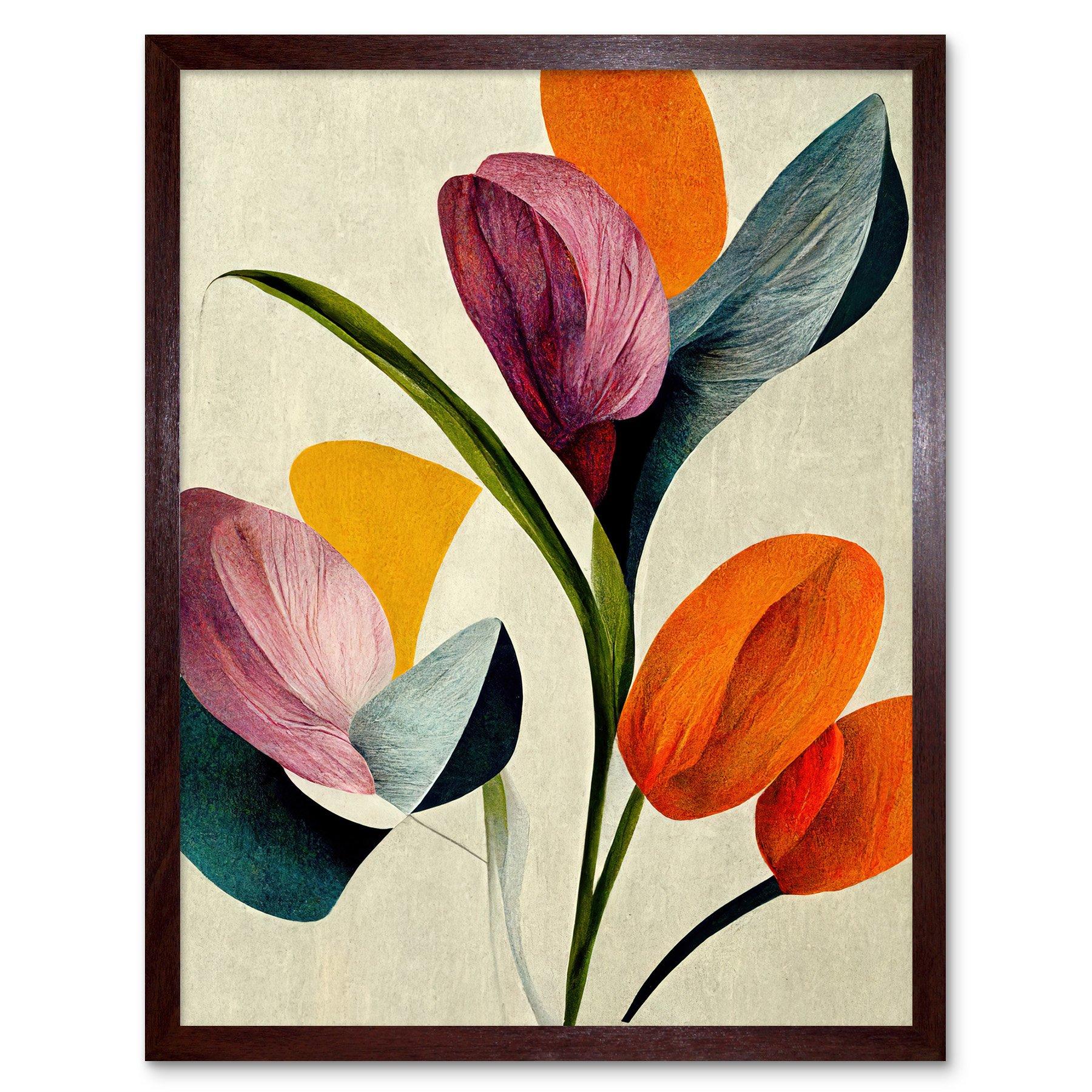 Poppy Flowers Colourful Floral Abstract Art Print Framed Poster Wall Decor 12x16 inch