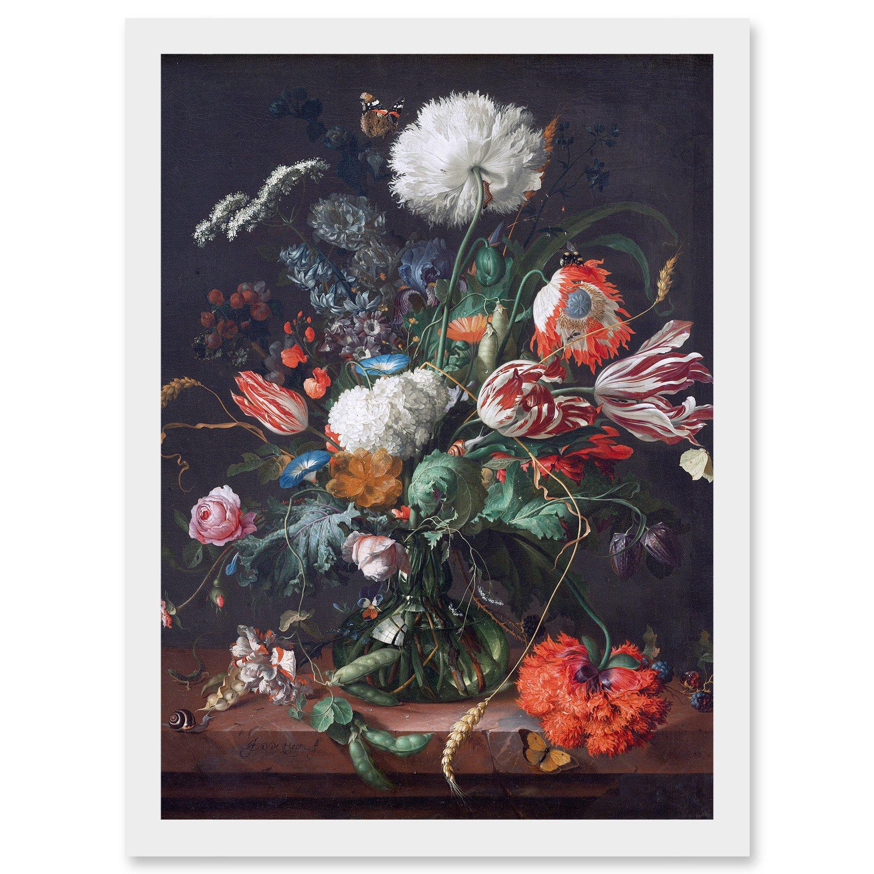 Jan Davidsz De Heem Vase Of Flowers Floral Artwork Framed Wall Art Print A4