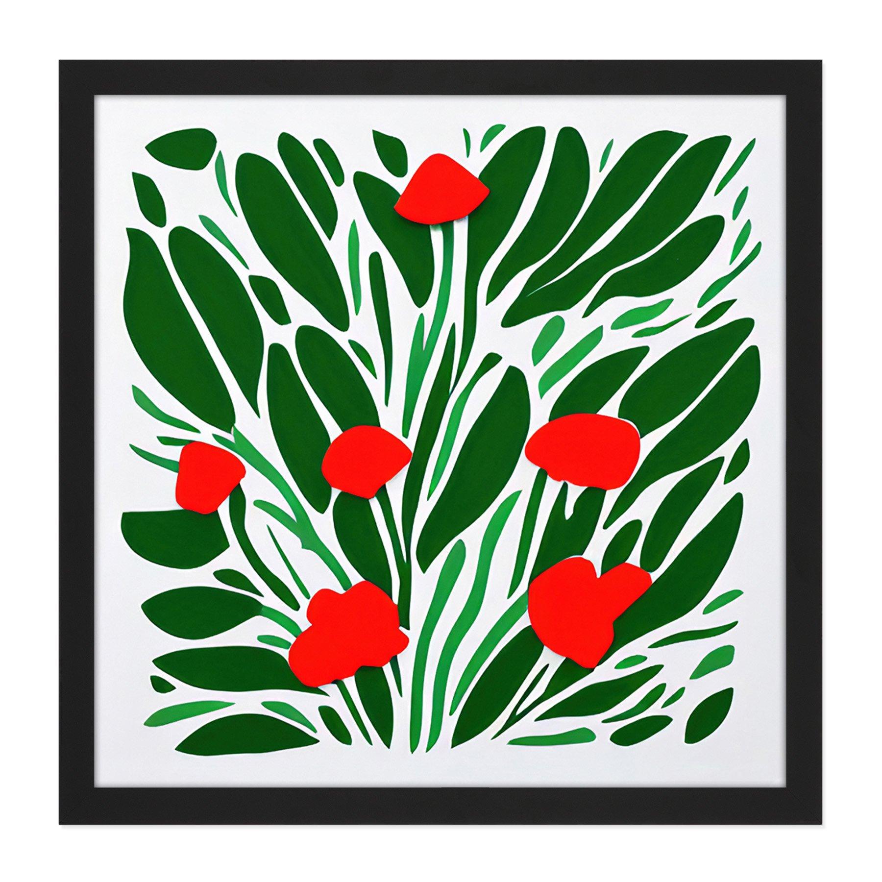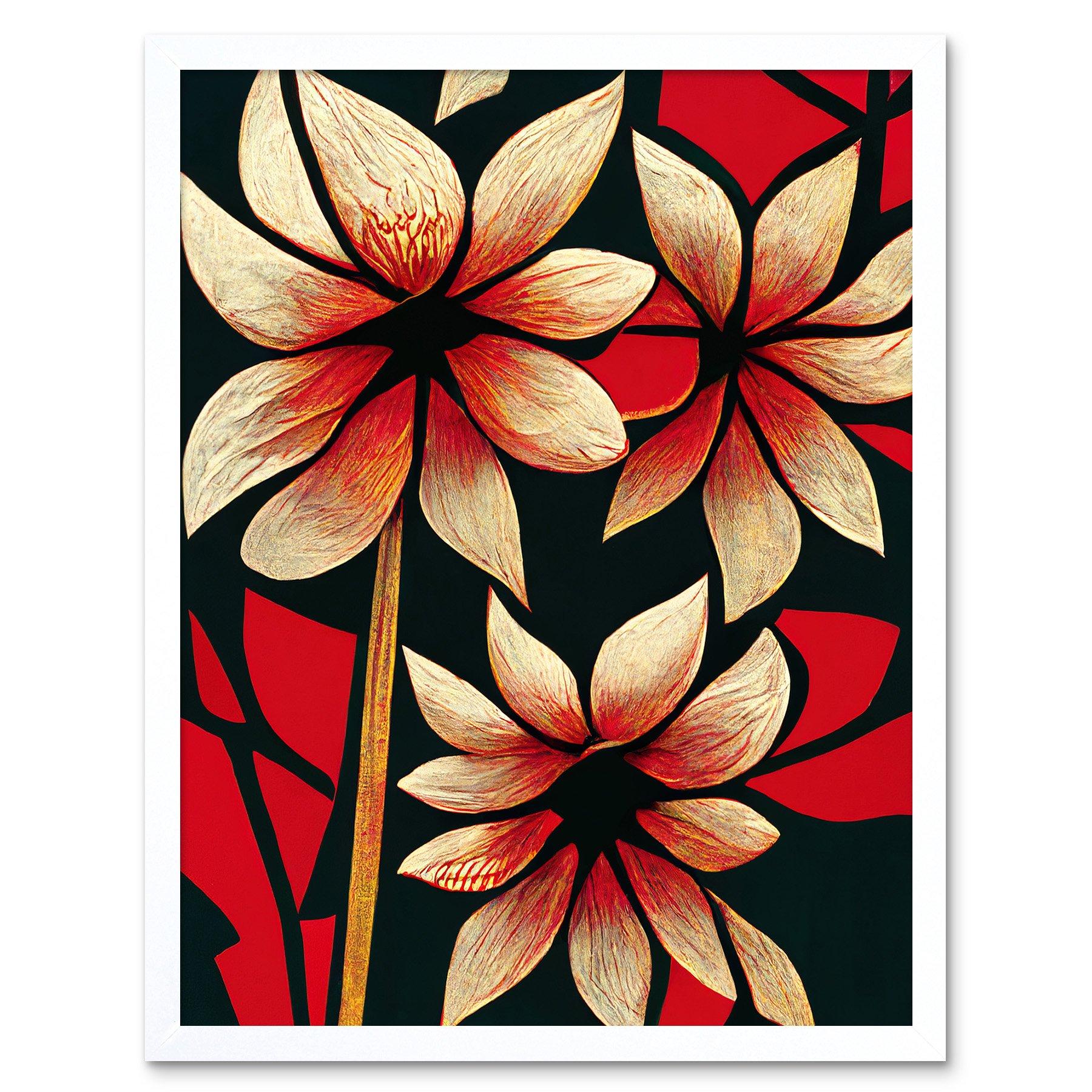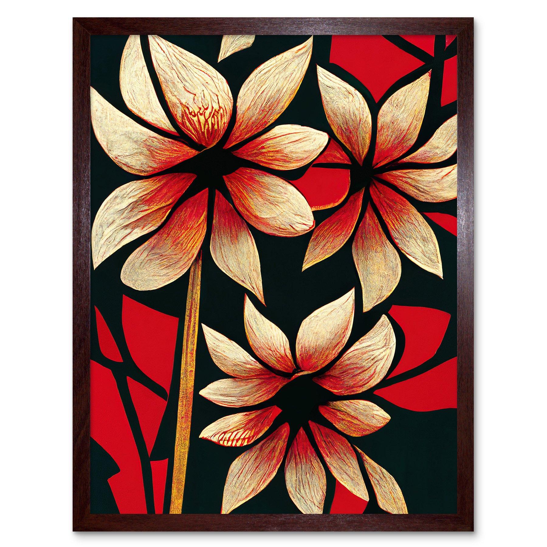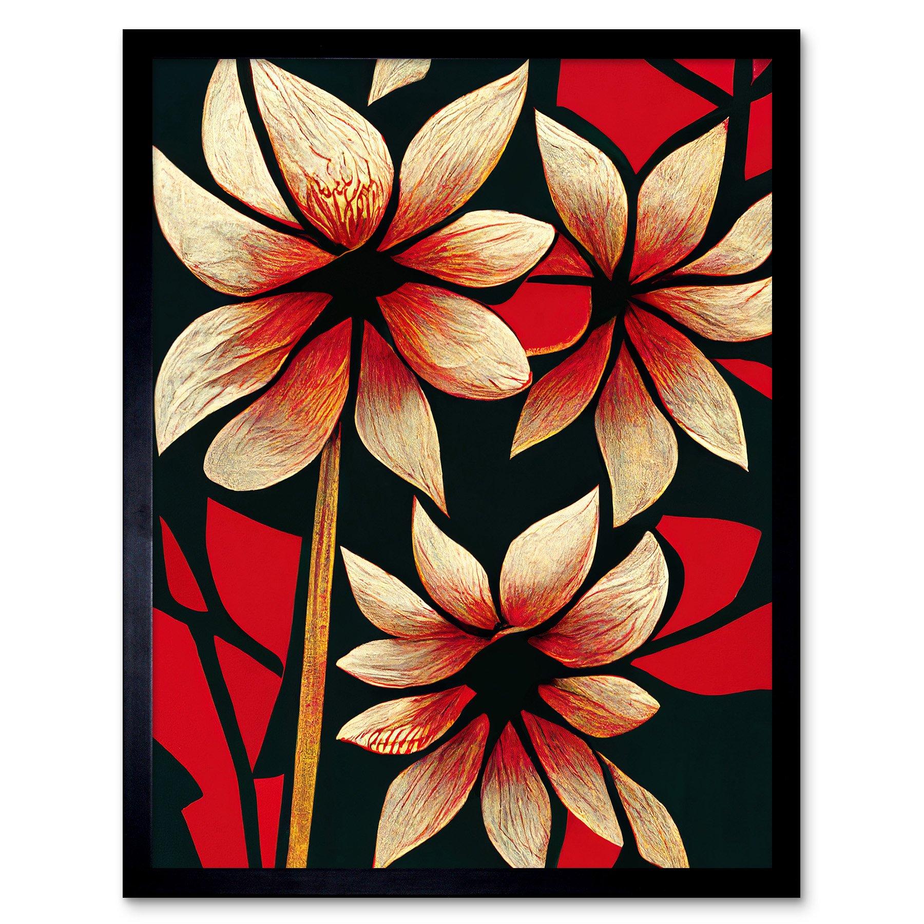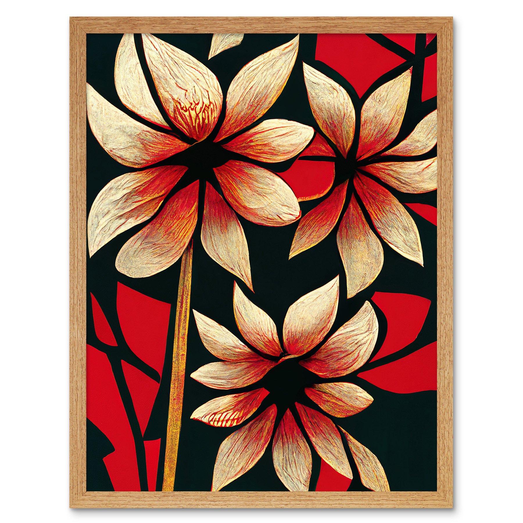 Bold Red & Black Flowers Floral Design Art Print Framed Poster Wall Decor 12x16 inch